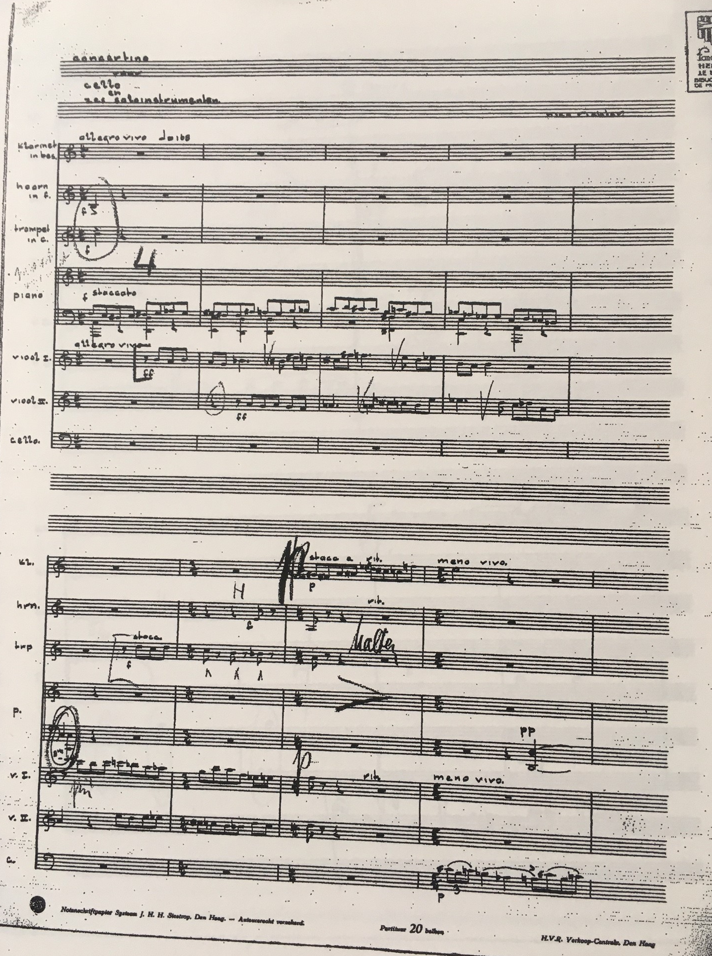 Almost all Nico Richter’s surviving compositions date from his student days. Most of them are ultrashort, inspired by Webern and Berg. As a student of medicine, he directed the student orchestra MUSA. He joined the resistance, was arrested in 1942 and sent to work in successive concentration camps. A physical wreck, he dictated his final composition on his deathbed just after liberation. His talent never reached full maturity. by Dr. Julia Muller-van Santen I. Allegro vivo II. Lento III. Presto First performance 19 July 1935 by the chamber orchestra of the Philharmonic Society (Filharmonische Vereniging) in Brussels (Concert Jeunesse), conducted by Hermann Scherchen. Awarded with the Prix Henri le Boeuf.