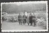 Foto van opnames van een propagandafilm in Kamp Amersfoort op 30 juni 1944. Van links naar rechts: medegevangene en hulparts Jan Tückermann, kampoudste Franciscus H. M. "Frans" van de Laar, medegevangene en hulparts Bernardus Josephus Quirinus van Tilburg, Kampkommandant Karl Peter Berg, Loes van Overeem. De man rechts in uniform rechts was verantwoordelijk voor propaganda maar zijn naam is niet bekend.