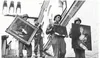James Rorimer van de Monuments, Fine Arts, and Archives (MFAA) en Amerikaanse militairen dragen kunstwerken uit het kasteel Neuschwanstein, Duitsland, mei 1945