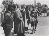 De Canadese bevrijders worden in Dokkum door een enthousiaste menigte begroet. Op de achtergrond, op de hoek van de Zijl met de Vlasstraat, is de apotheek van Piet Gunster te zien. 14 april 1945