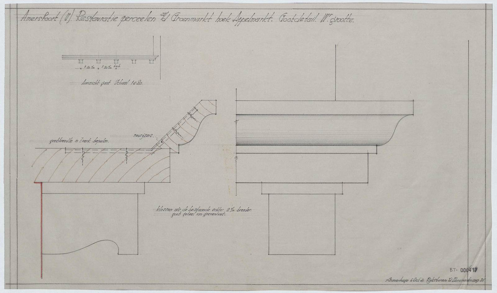 Restauratie percelen Groenmarkt hoek Appelmarkt. Gootdetail, ware grootte - blad No. 11