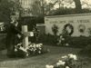 Bij het eerste oorlogsmonument aan 'de kop van de Plantage'. bevestigd burgemeester J.W.
