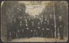 Een groep mannen op de Oranjestraat nabij de Enterstraat. Waarschijnlijk hebben zij de straat versierd. Op de voorste rij staan een paar mannen met een feesthoedje op.