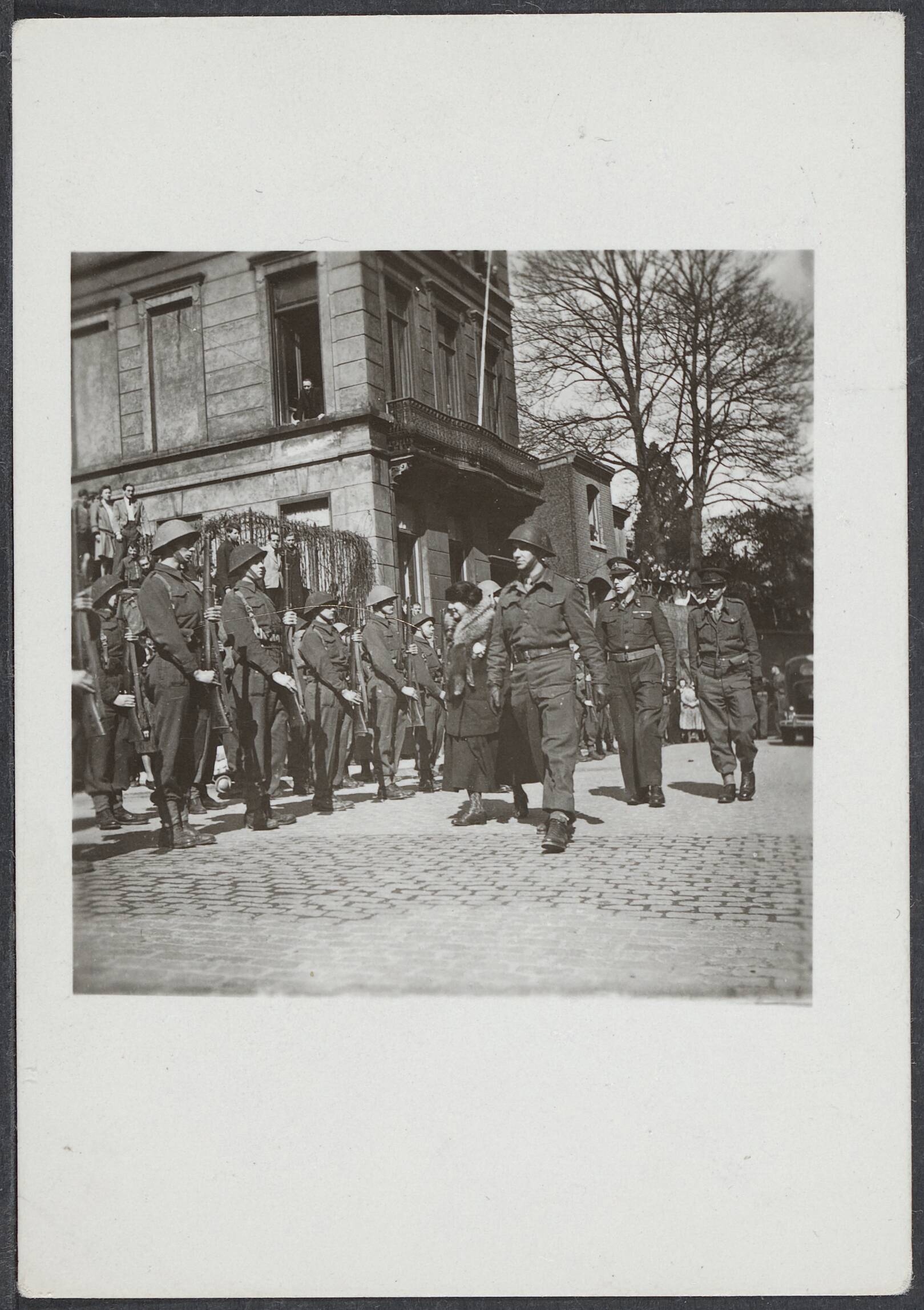 Maastricht. Inspectie van de erewacht door koningin Wilhelmina