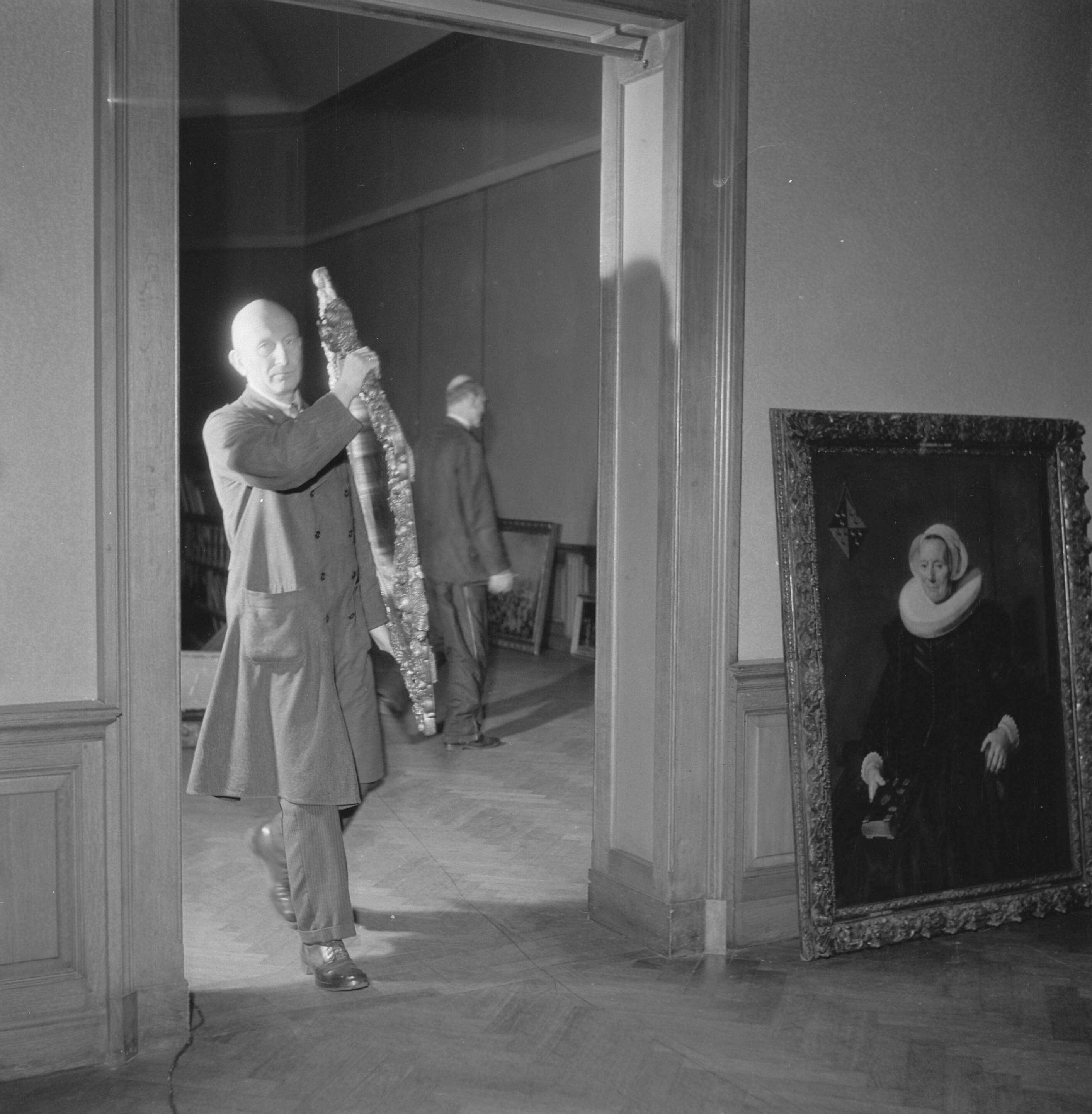 Herinrichting van de schilderijenzalen; rechts het portret van Maritge Voogt door Frans Hals