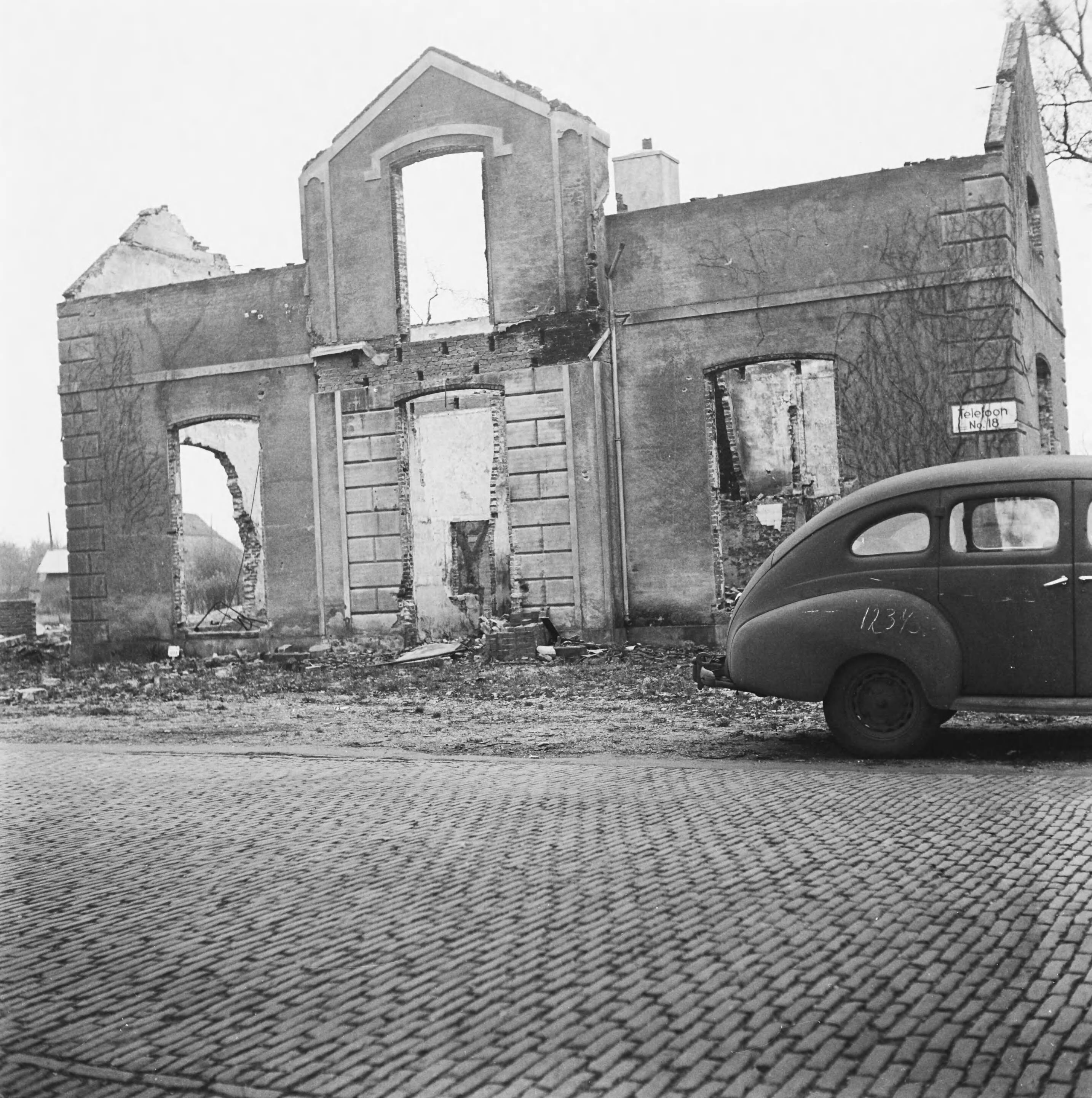 Een van de 105 huizen die door de Duitsers in brand zijn gestoken als represaillemaatregel voor een aanslag op een Duitse militair
