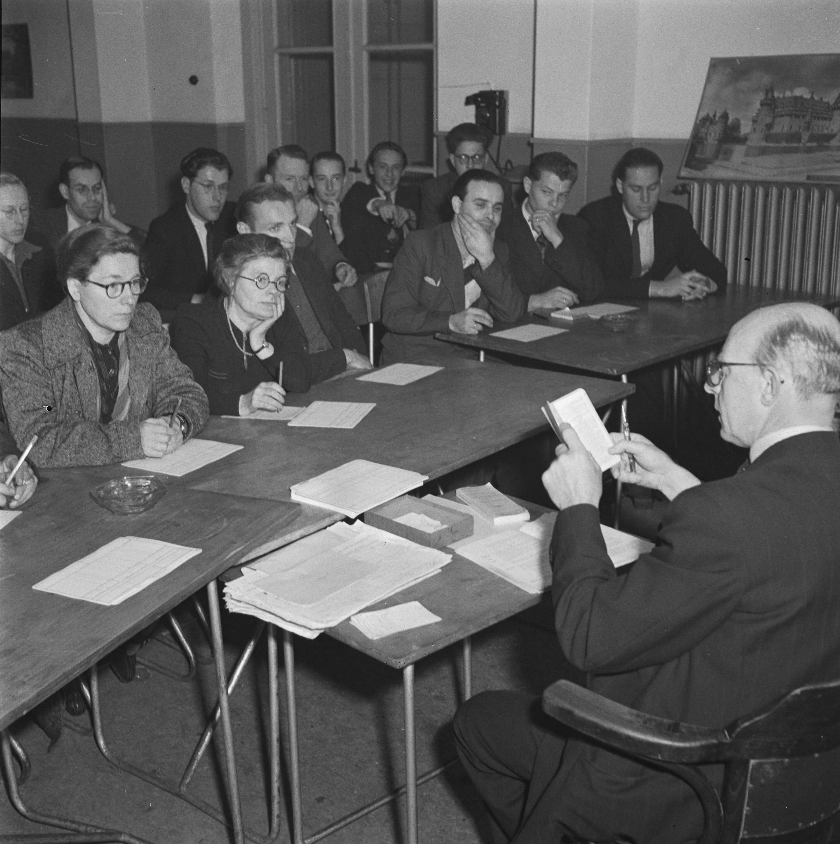 Voorbereidingen voor de eerste Tweede Kamer-verkiezingen na de oorlog. Cursus voor ambtenaren