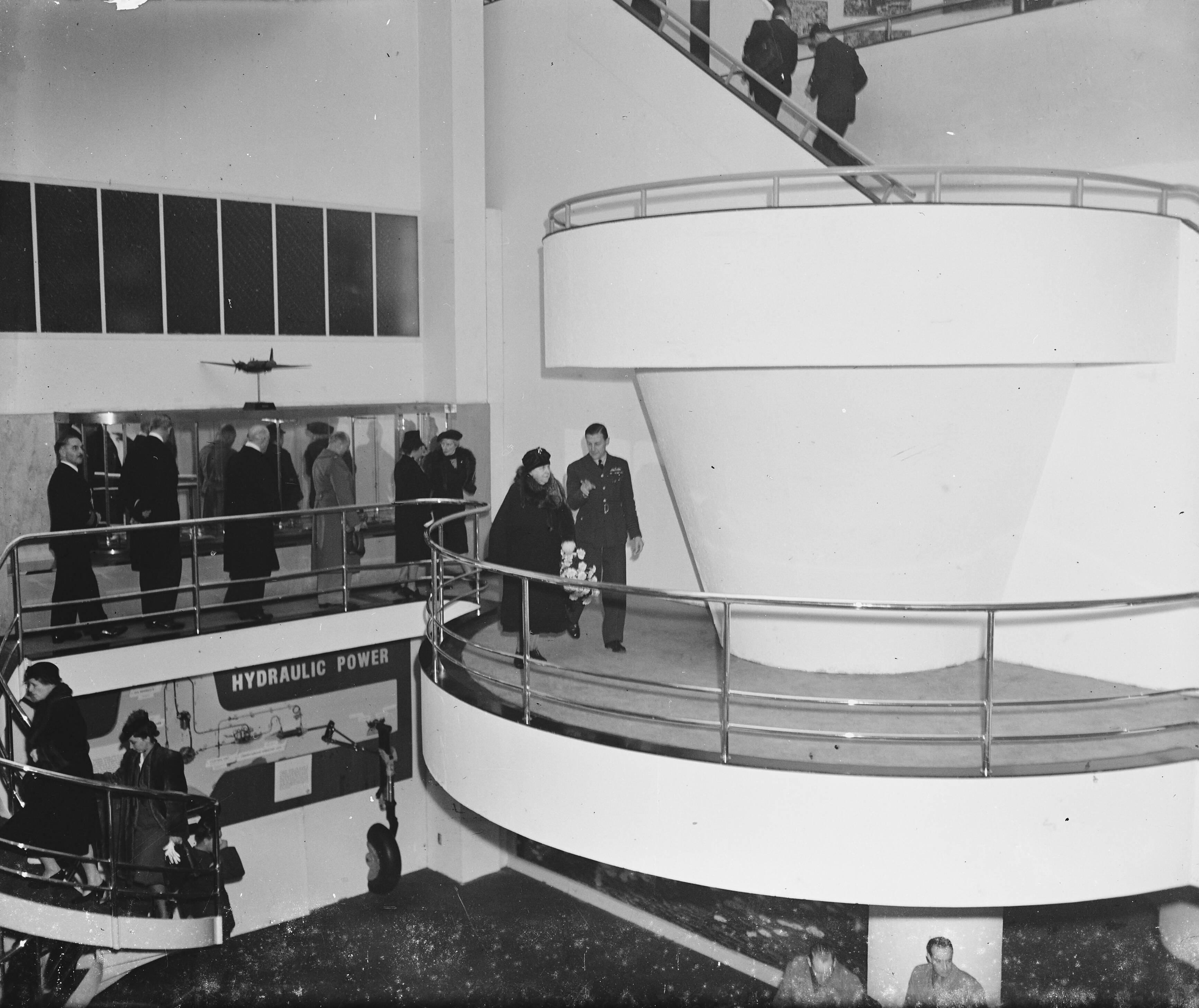 Koningin Wilhelmina wordt rondgeleid door kapitein G. Rutten