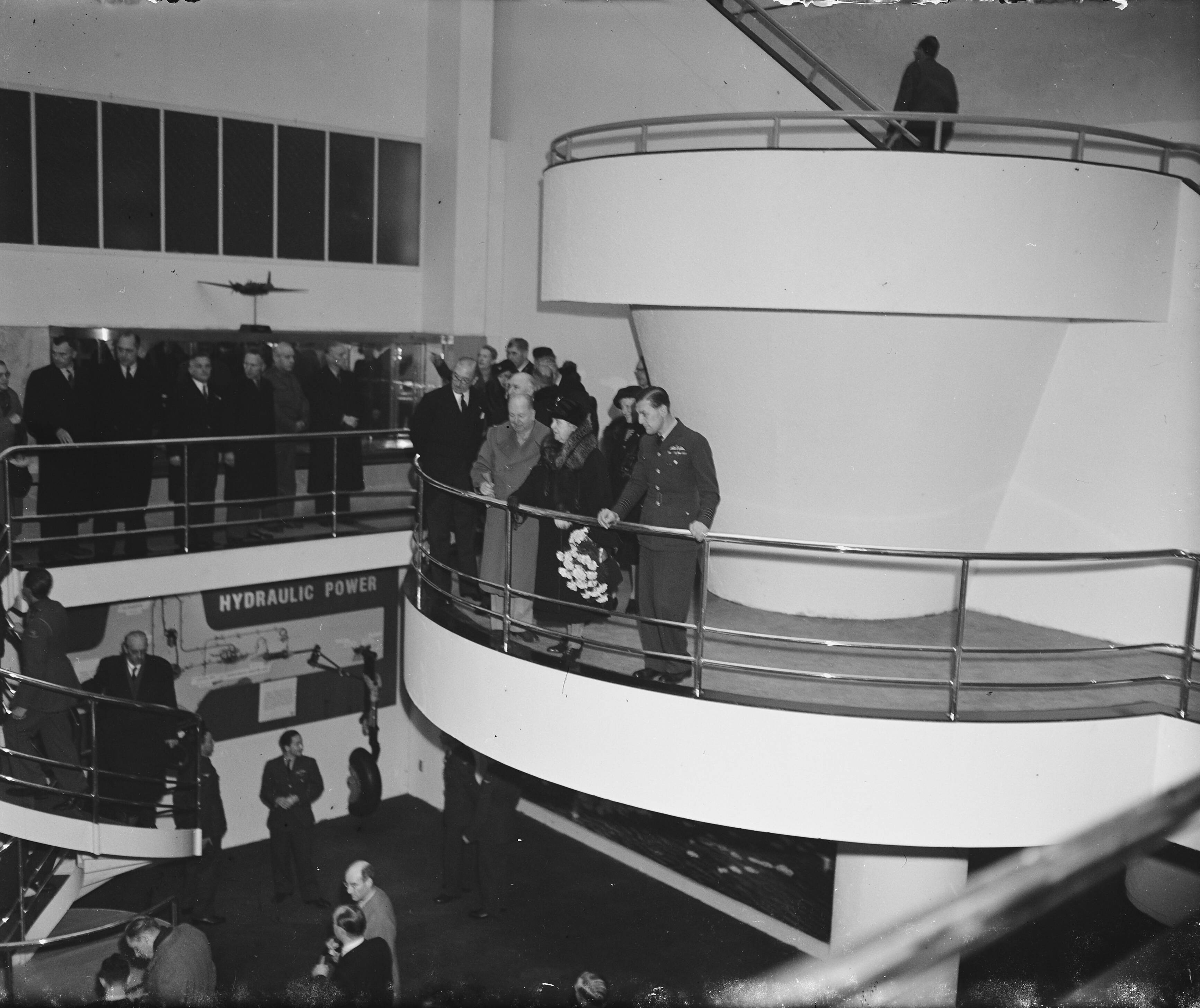 Koningin Wilhelmina wordt rondgeleid door kapitein G. Rutten