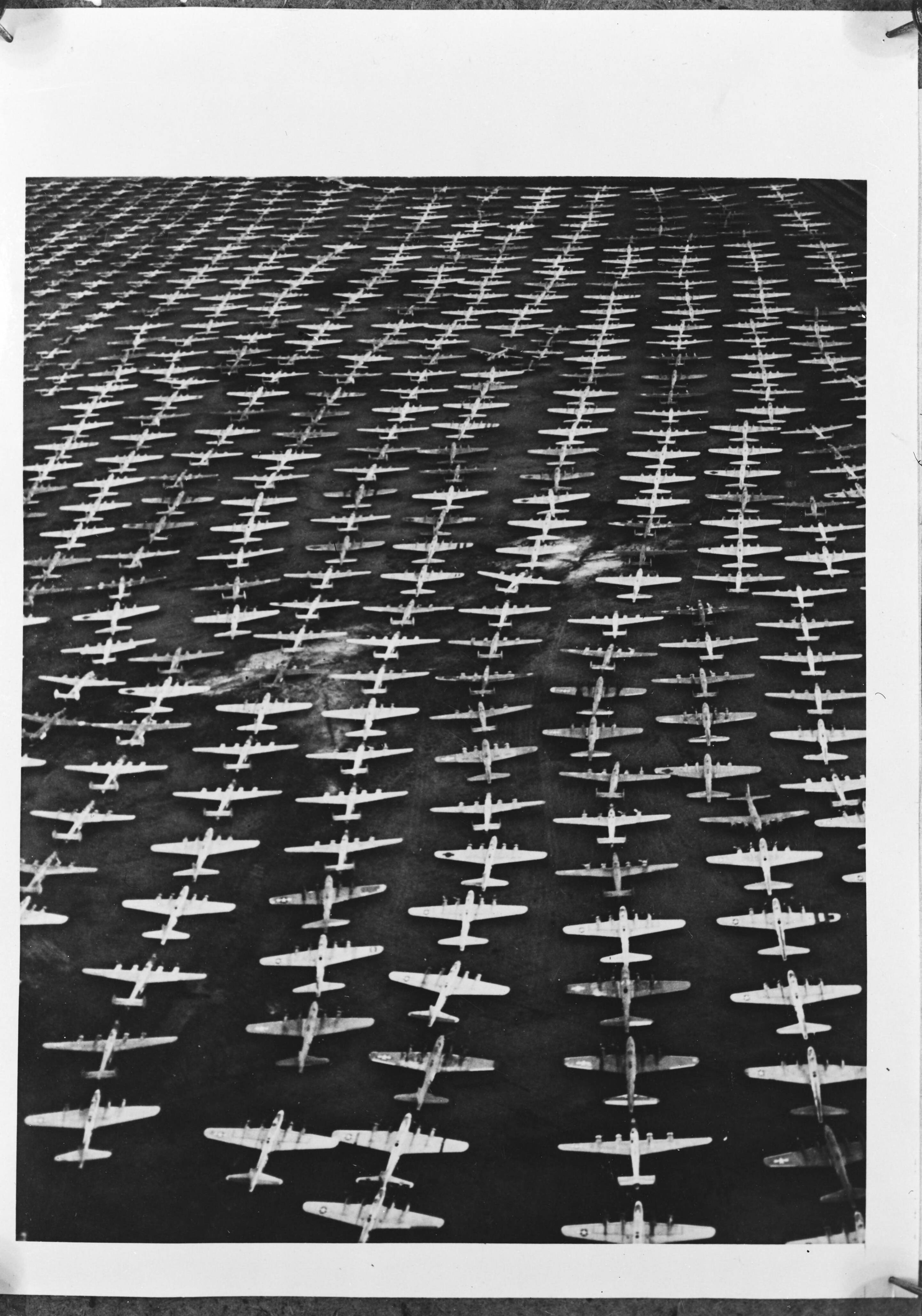 Luchtopname. Opslagplaats van 4200 B-17 bommenwerpers die in WO II gebruikt zijn