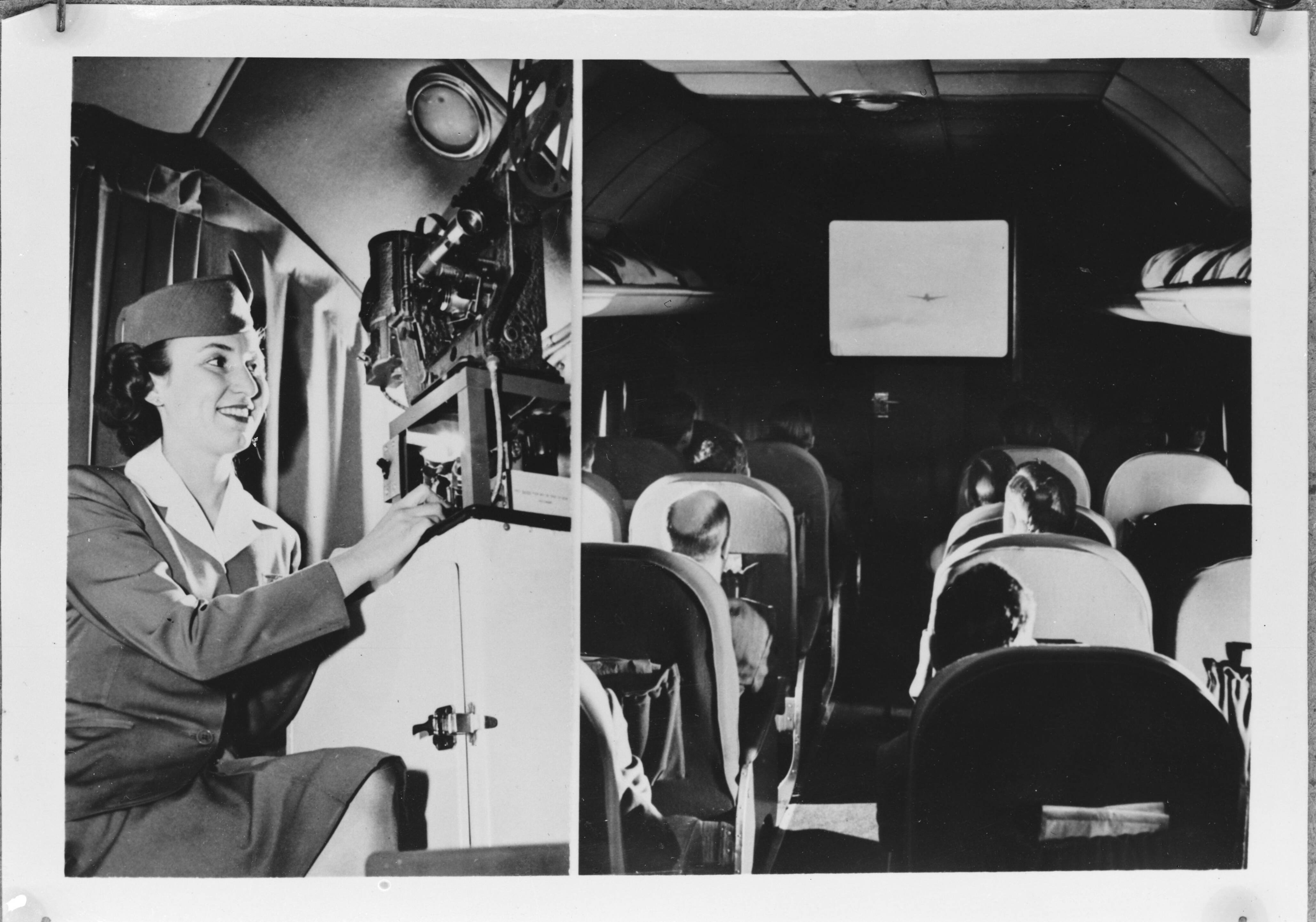 In een Amerikaans vliegtuig worden films vertoond