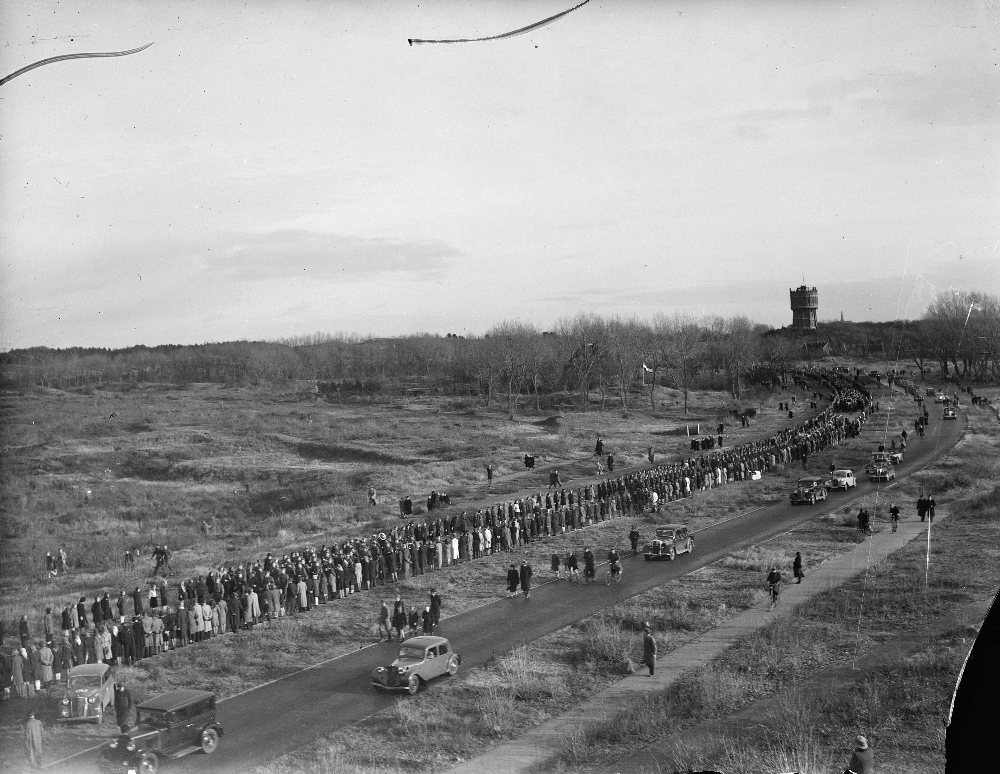 Plechtige bijzetting van de stoffelijke resten van 400 illegale strijders op de begraafplaats aan de Zeeweg te Overveen.