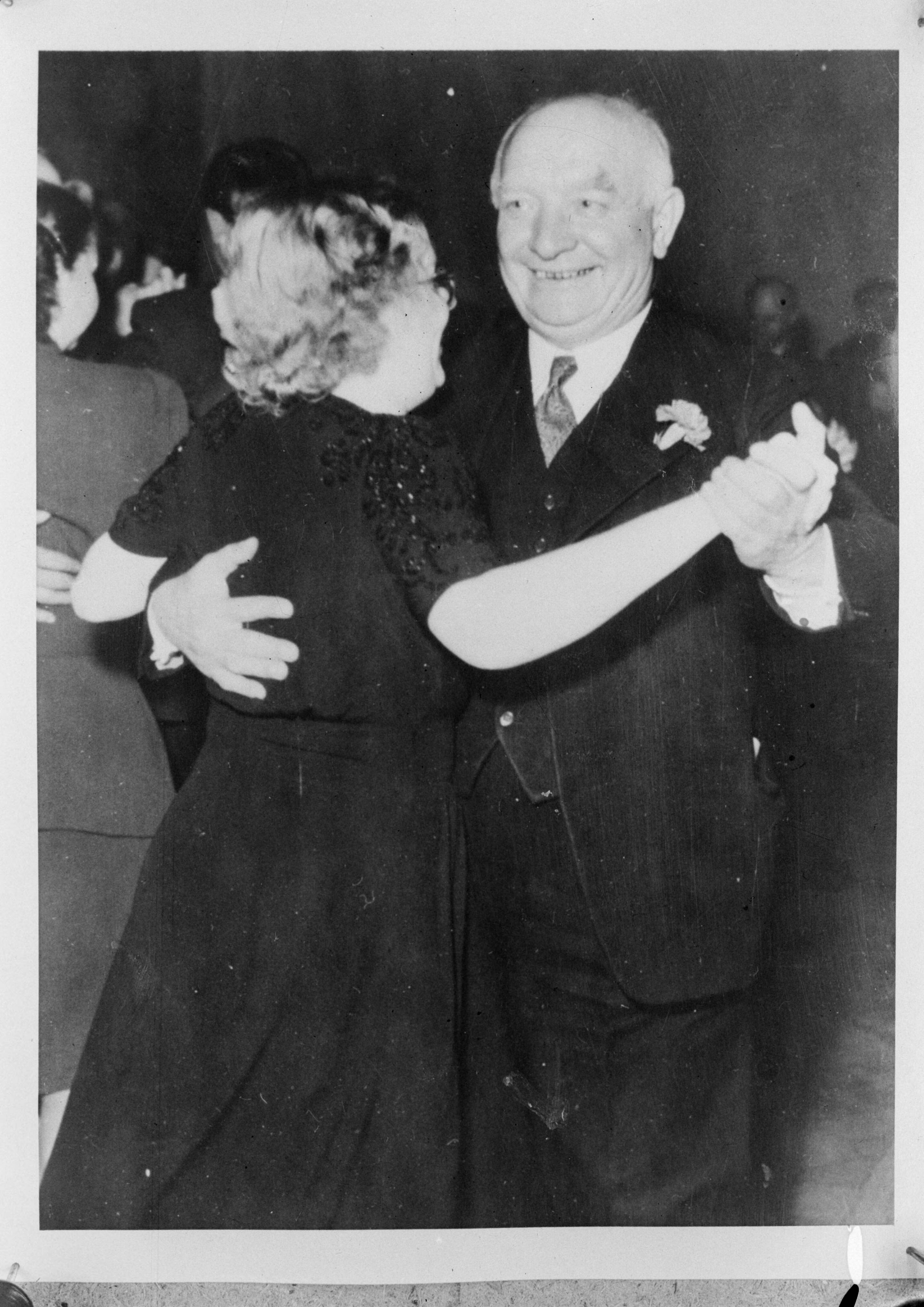 Zweedse premier Per Albin Hansson op zestigste verjaardag, dansend met zijn echtgenote