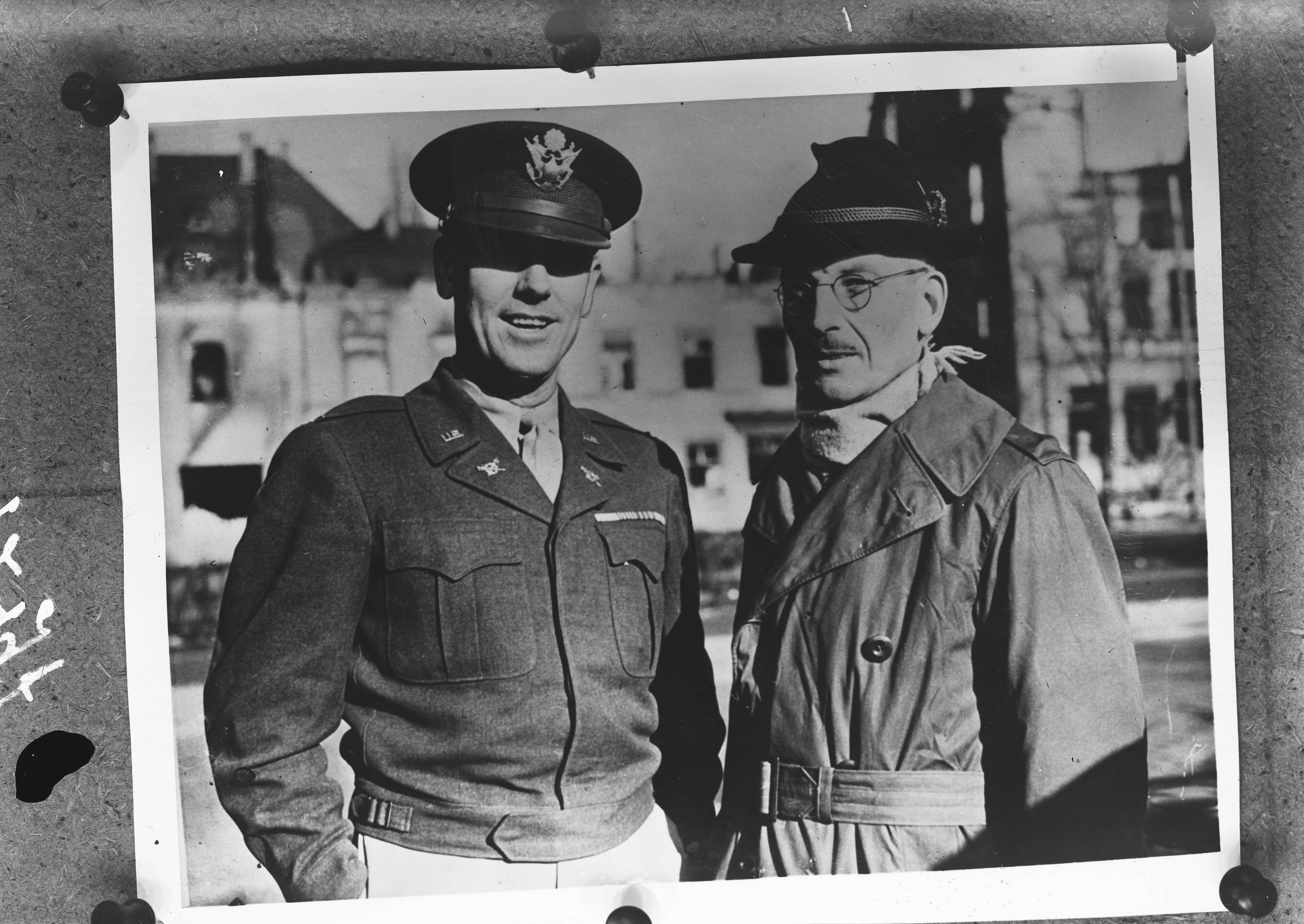 De voormalige Oostenrijkse bondskanselier Kurt Schuschnigg en een Amerikaanse officier