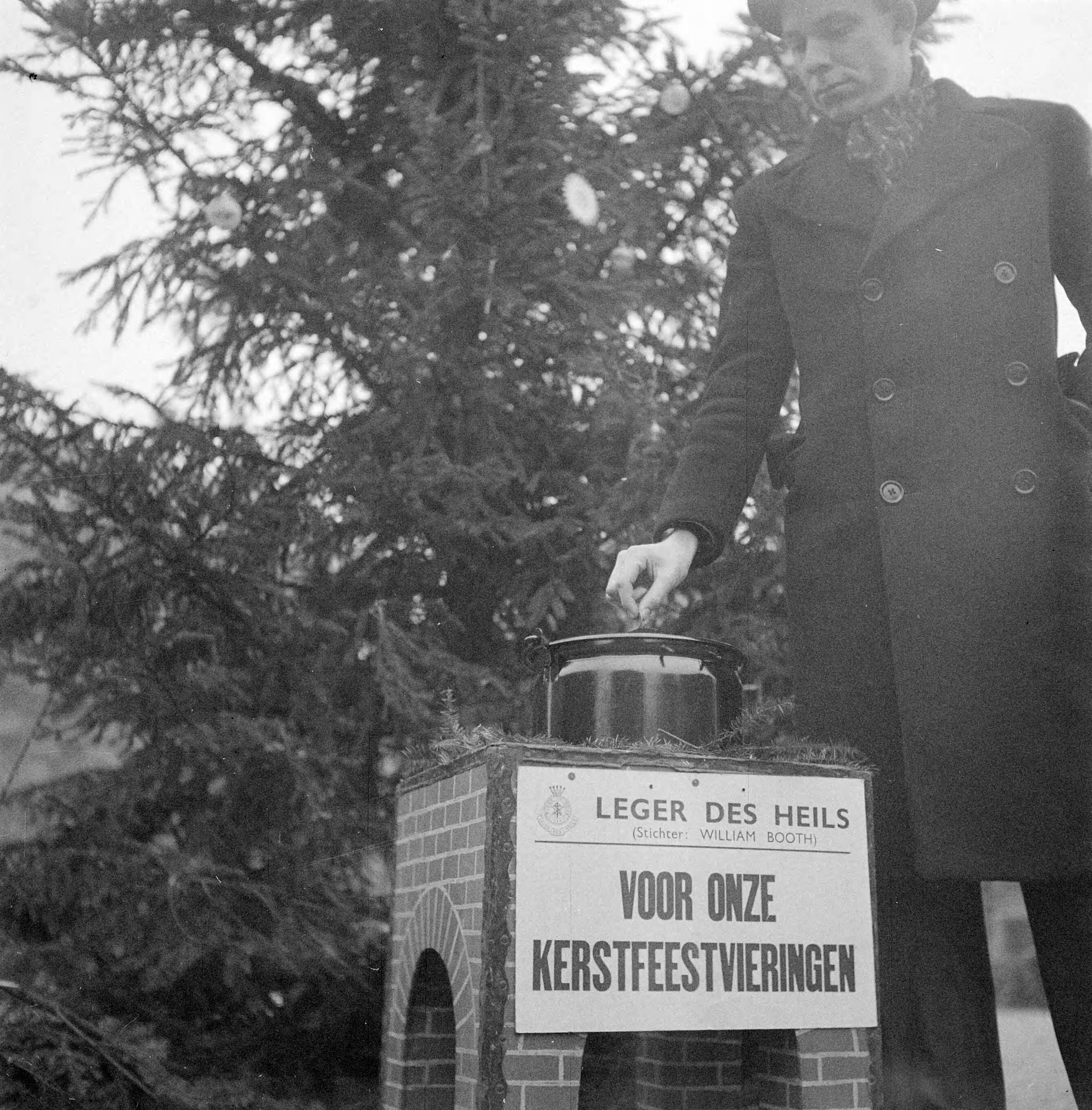Kerstpot van het Leger des Heils voor het Paleis op de Dam te Amsterdam.