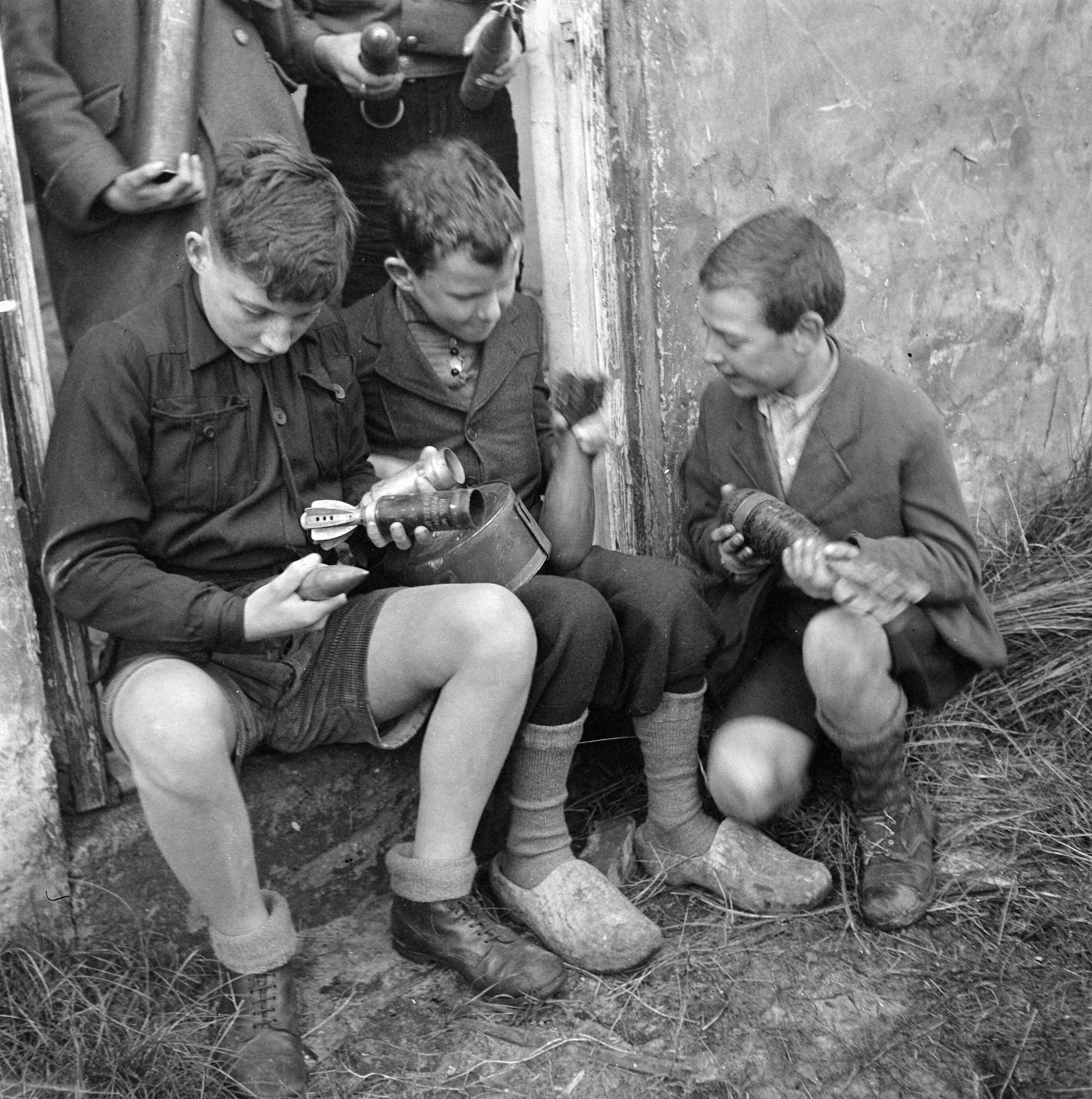 Zuid-Nederland. Reportage over de gevaren van mijnen en achtergelaten munitie voor spelende kinderen.