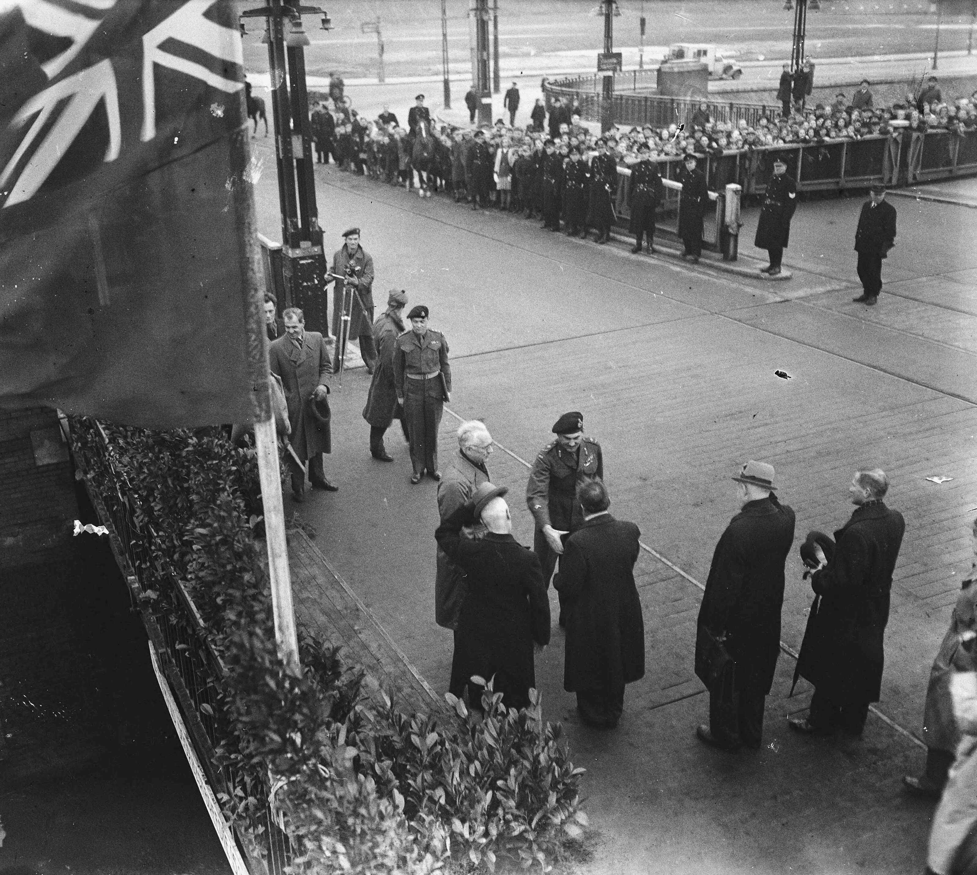 Generaal Simonds en burgemeester De Boer op de Berlagebrug