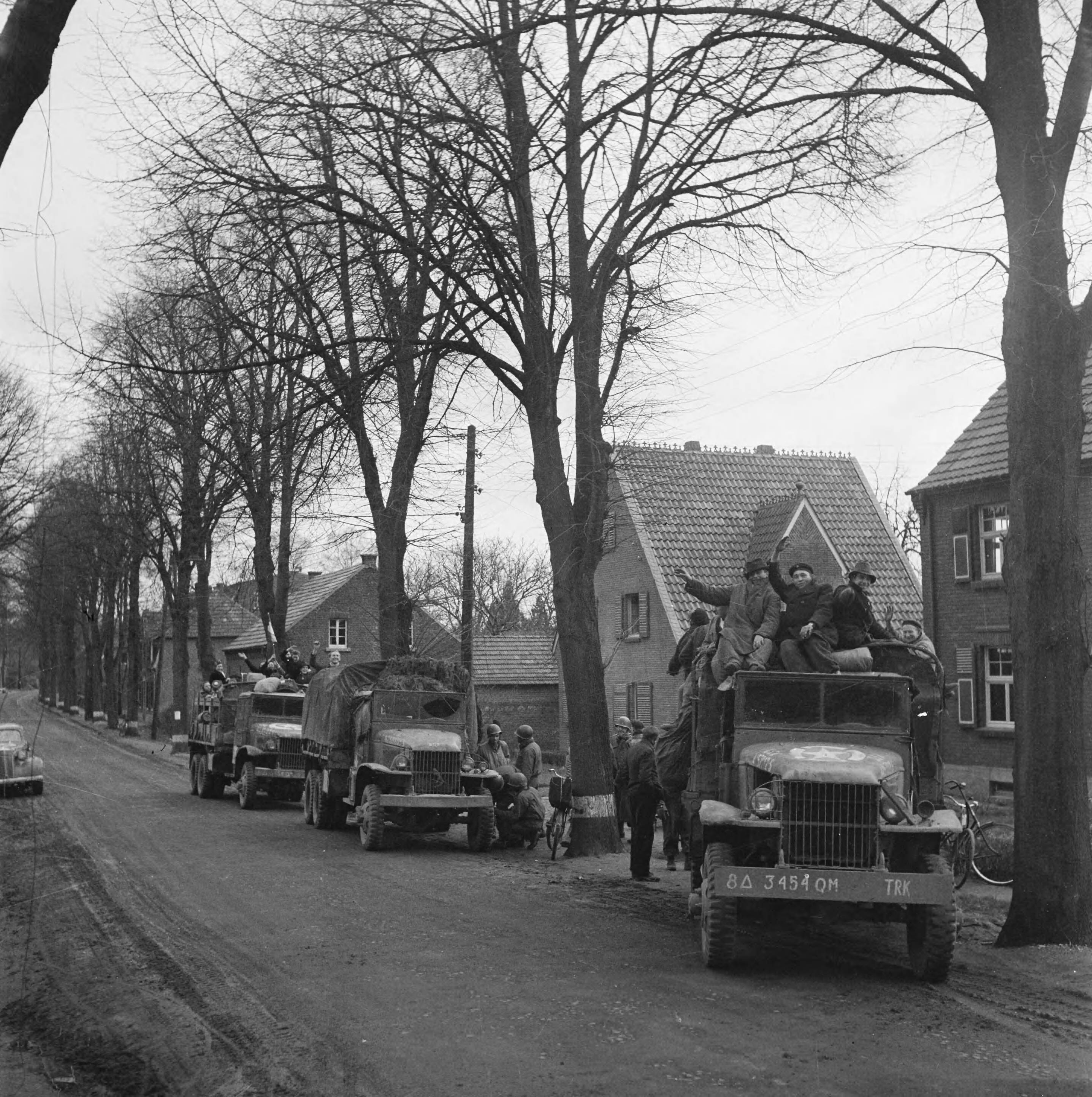 De bevolking van Roermond keert naar huis terug op Amerikaanse legertrucks