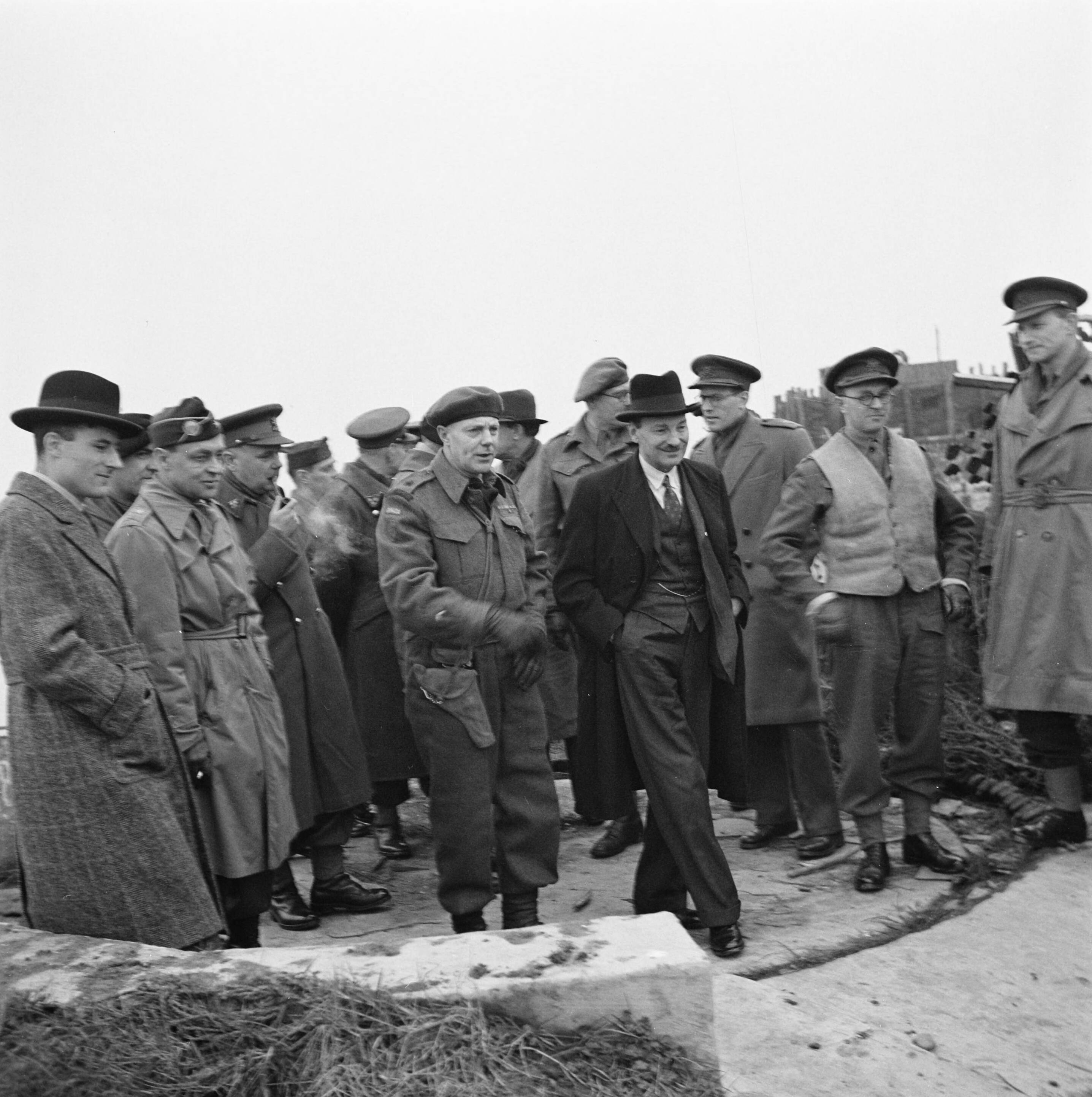 Britse, Canadese, Amerikaanse en Nederlandse militairen vergezellen hem.