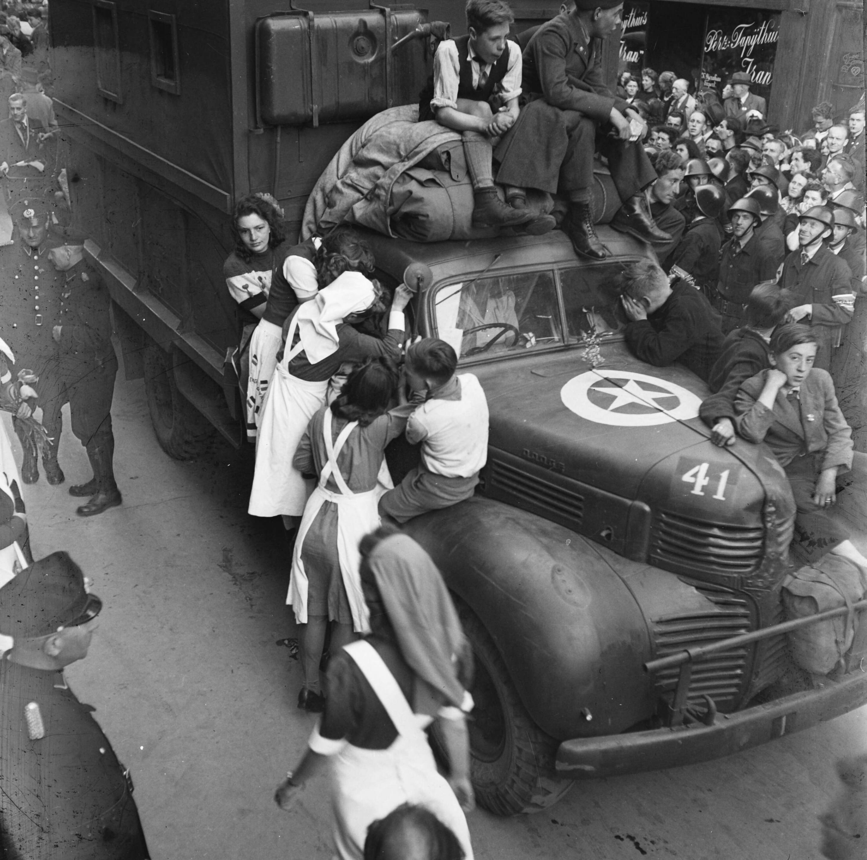 Bevrijdingsfeest in Den Haag Warm onthaal voor een Canadese chauffeur.