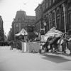 Jeugddemonstratie op de Dam te Amsterdam iemand wordt op een brancard weggedragen