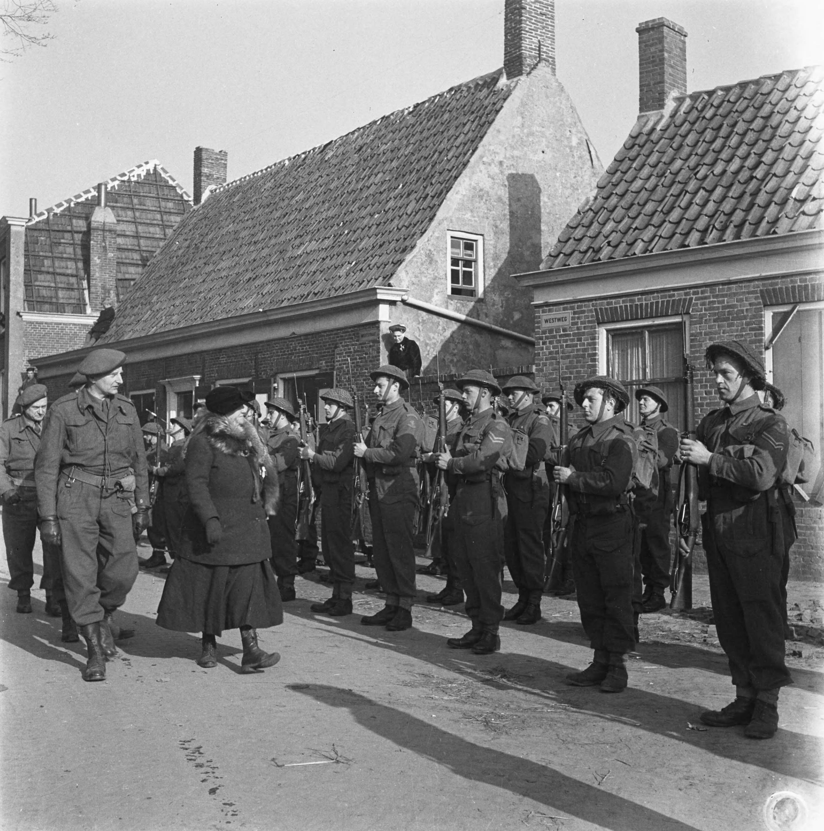 Domburg. Westweg. Koningin Wilhemina inspecteert een erewacht