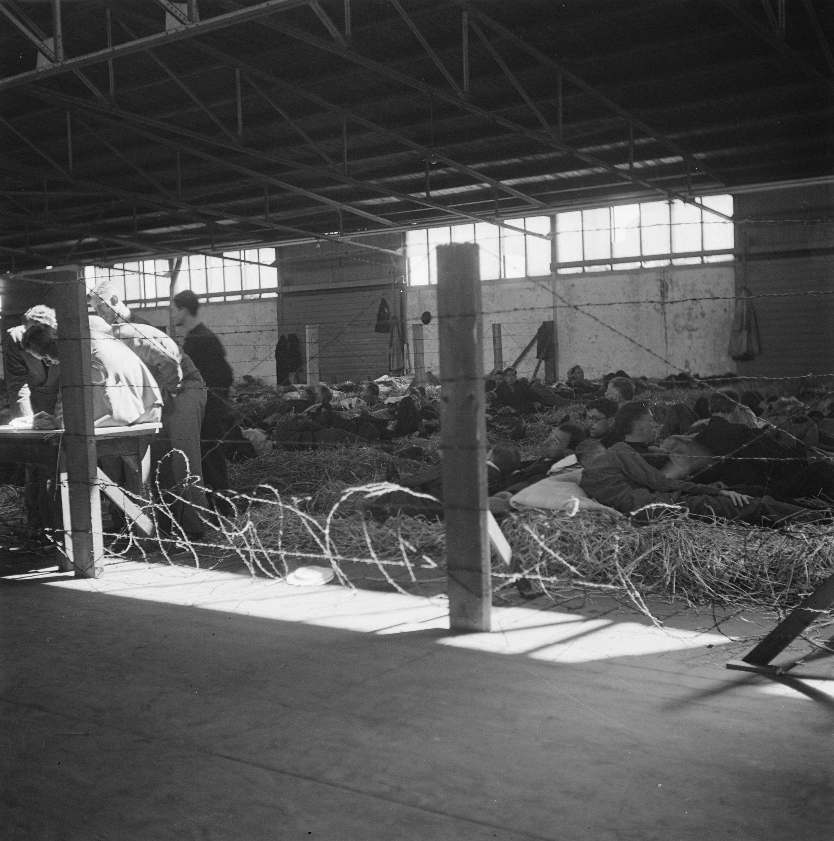 Reportage van het interneringskamp op de Levantkade te Amsterdam. Nu zijn er ca. 4200 gevangenen, er is plaats voor 30.000 personen