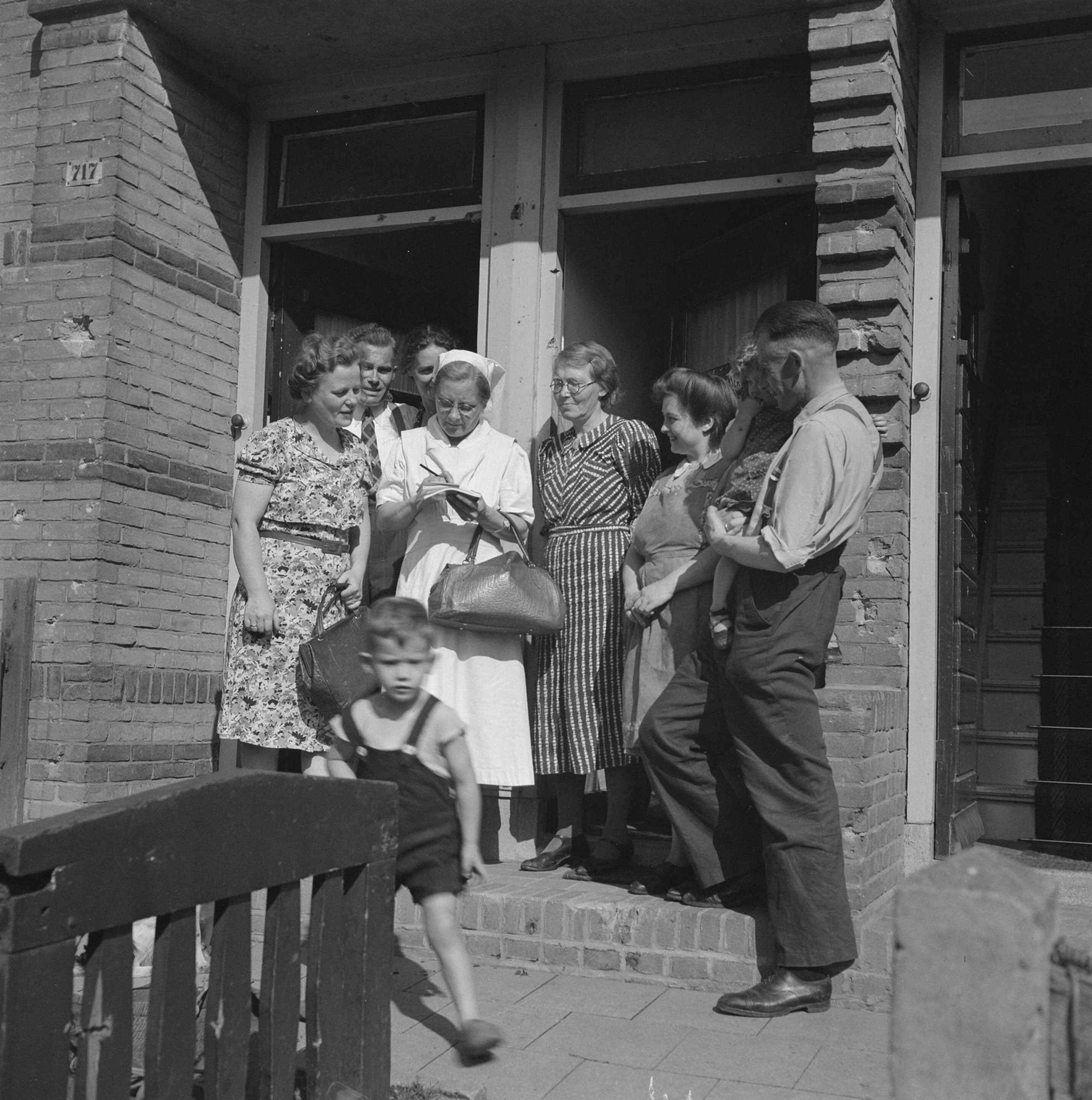Verpleegster met gezinnen, teruggekeerde evacuées