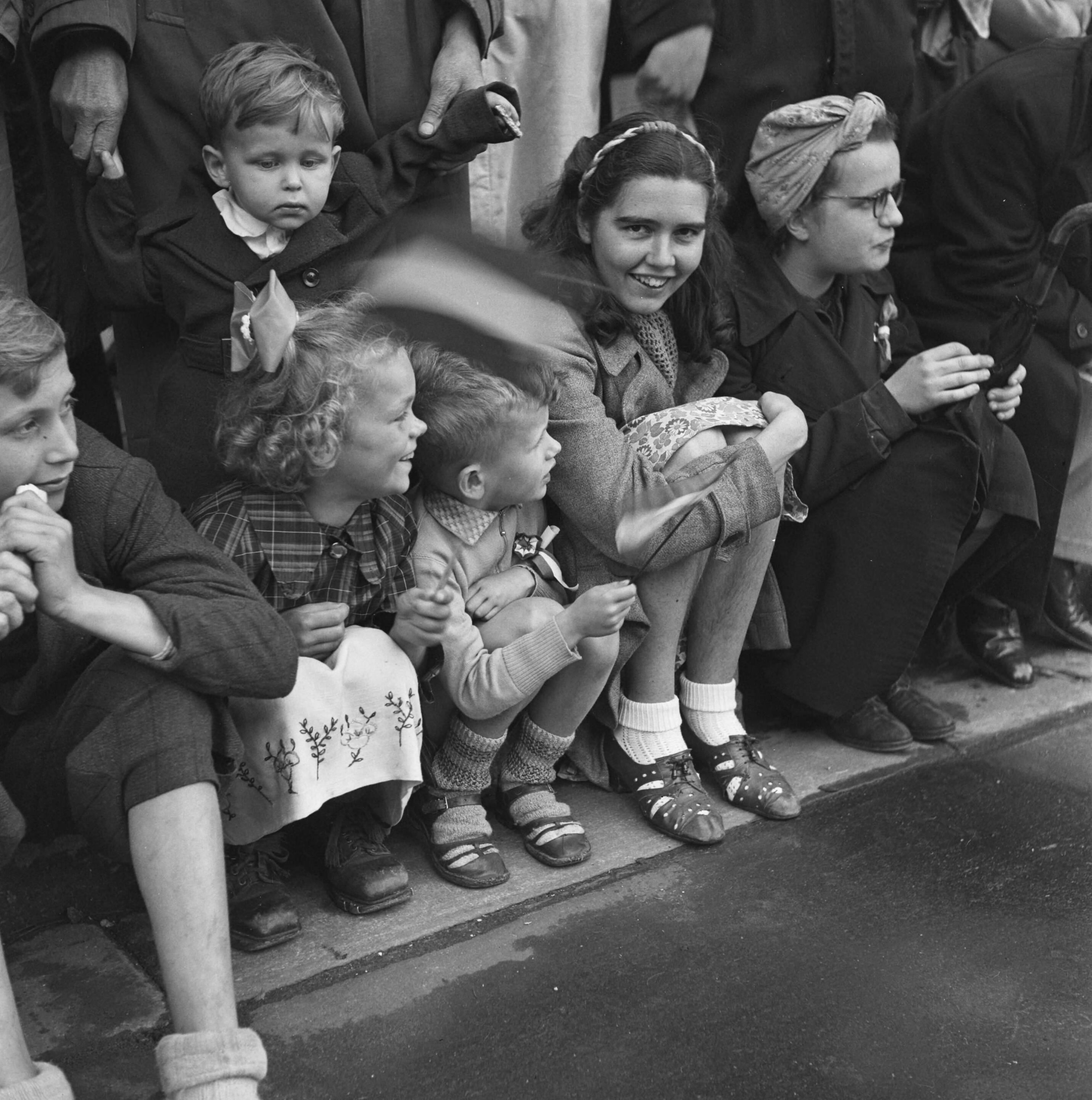 Kinderen langs de weg tijdens een optocht