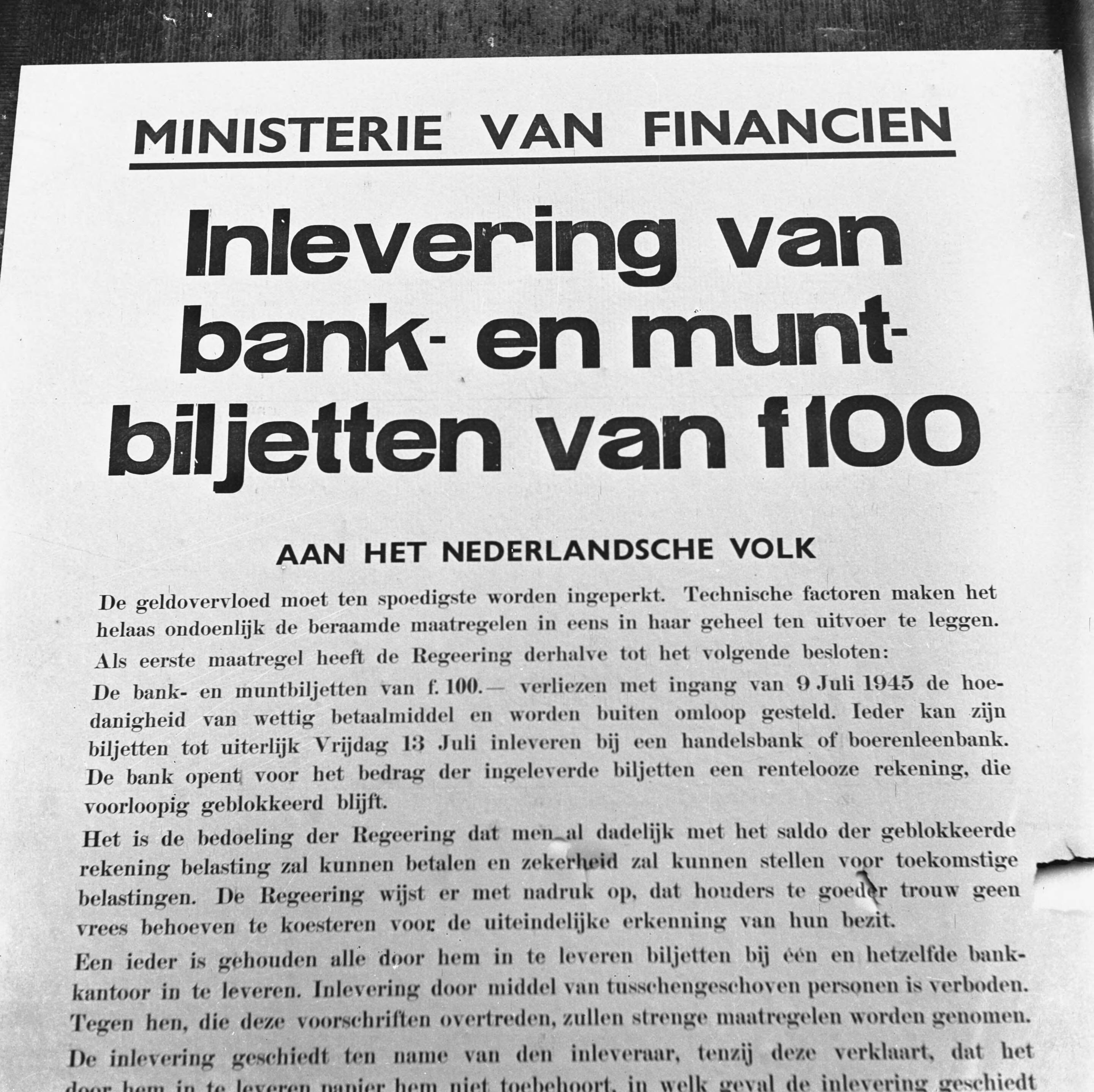 Verordening van het Ministerie van Financiën over de inlevering van f. 100,-- biljetten