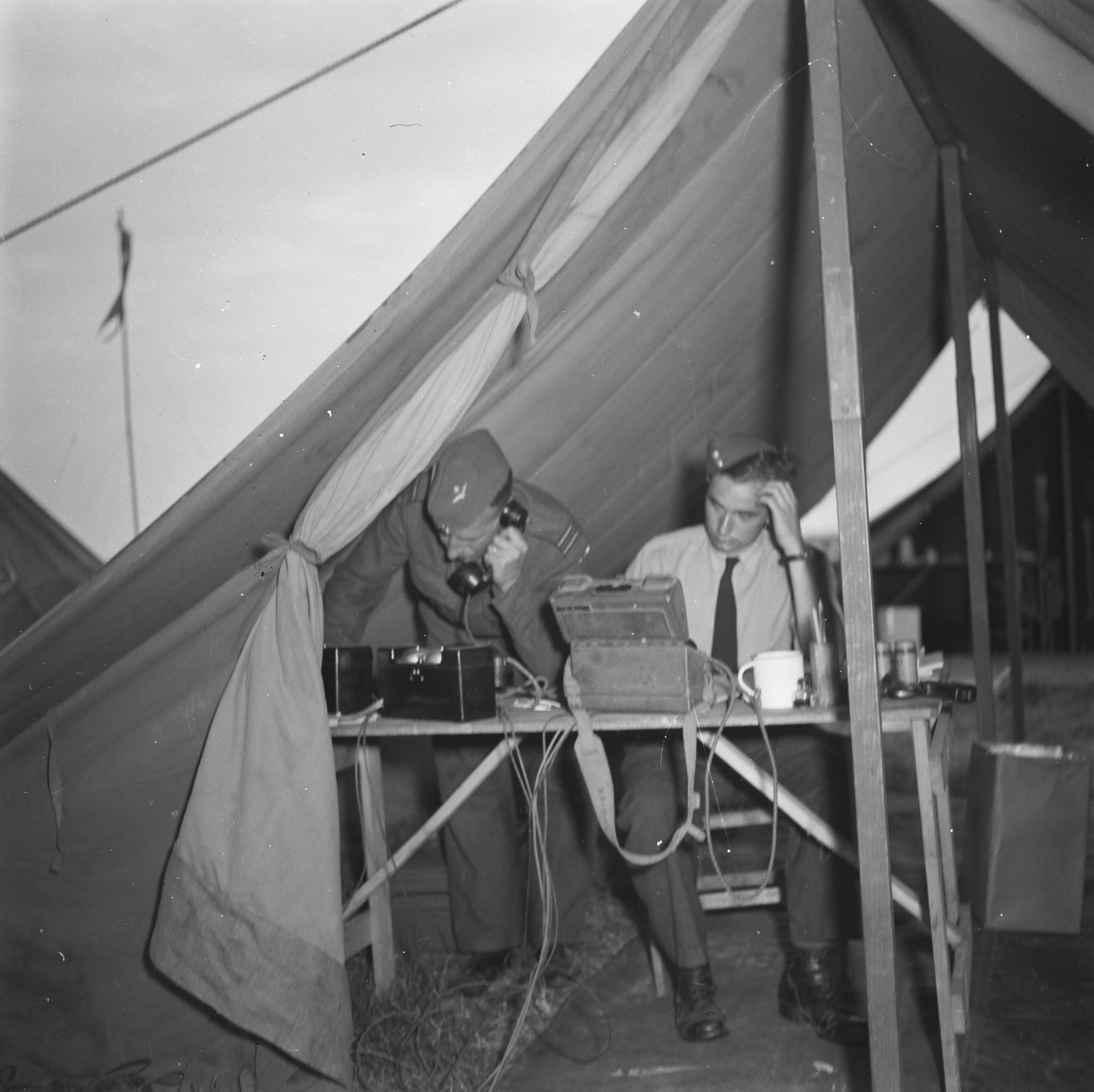 Communicatiecentrum in tent met luchtmachtpersoneel