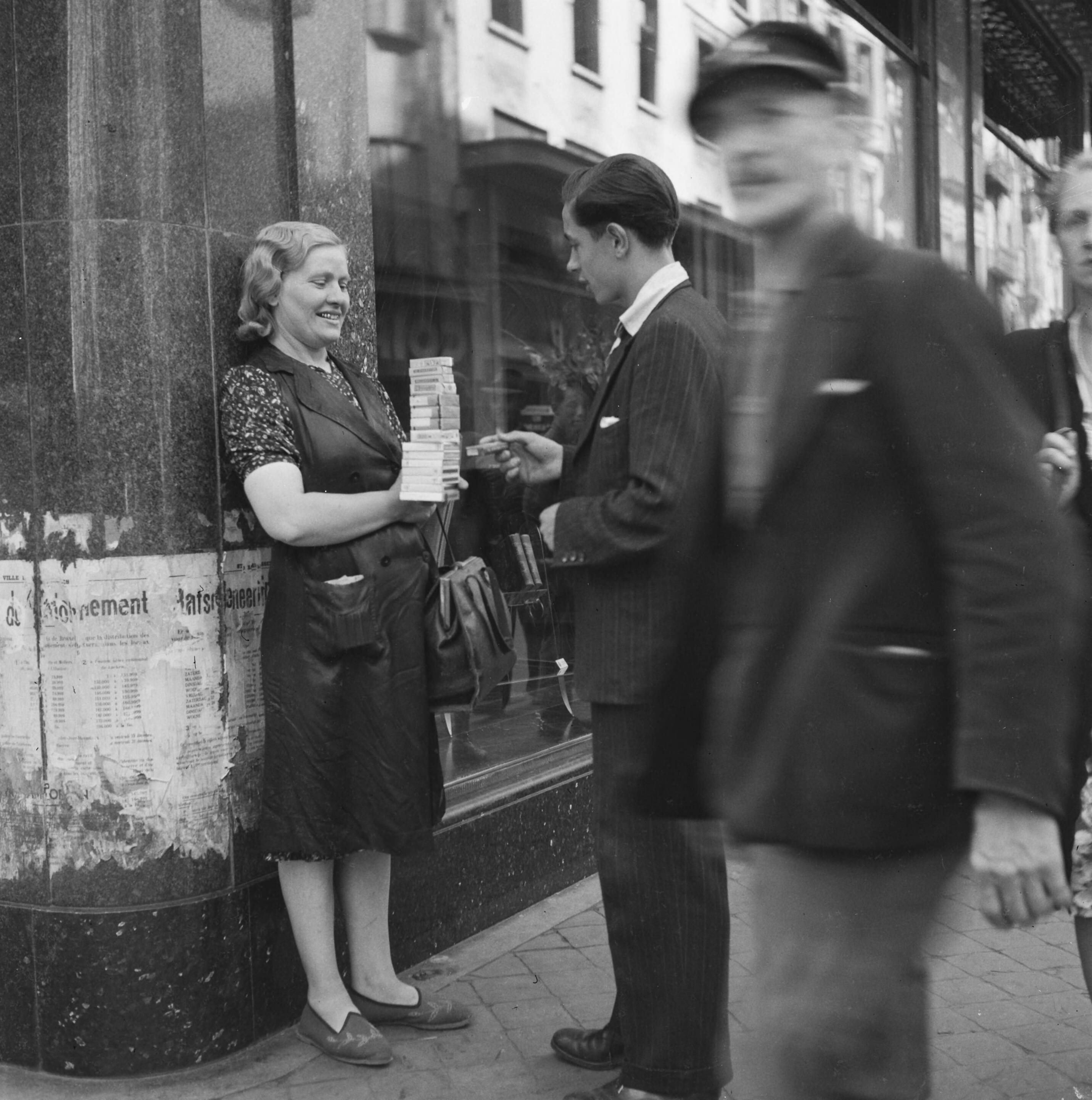 Straatscene in Parijs. Sigarettenverkoop op straat