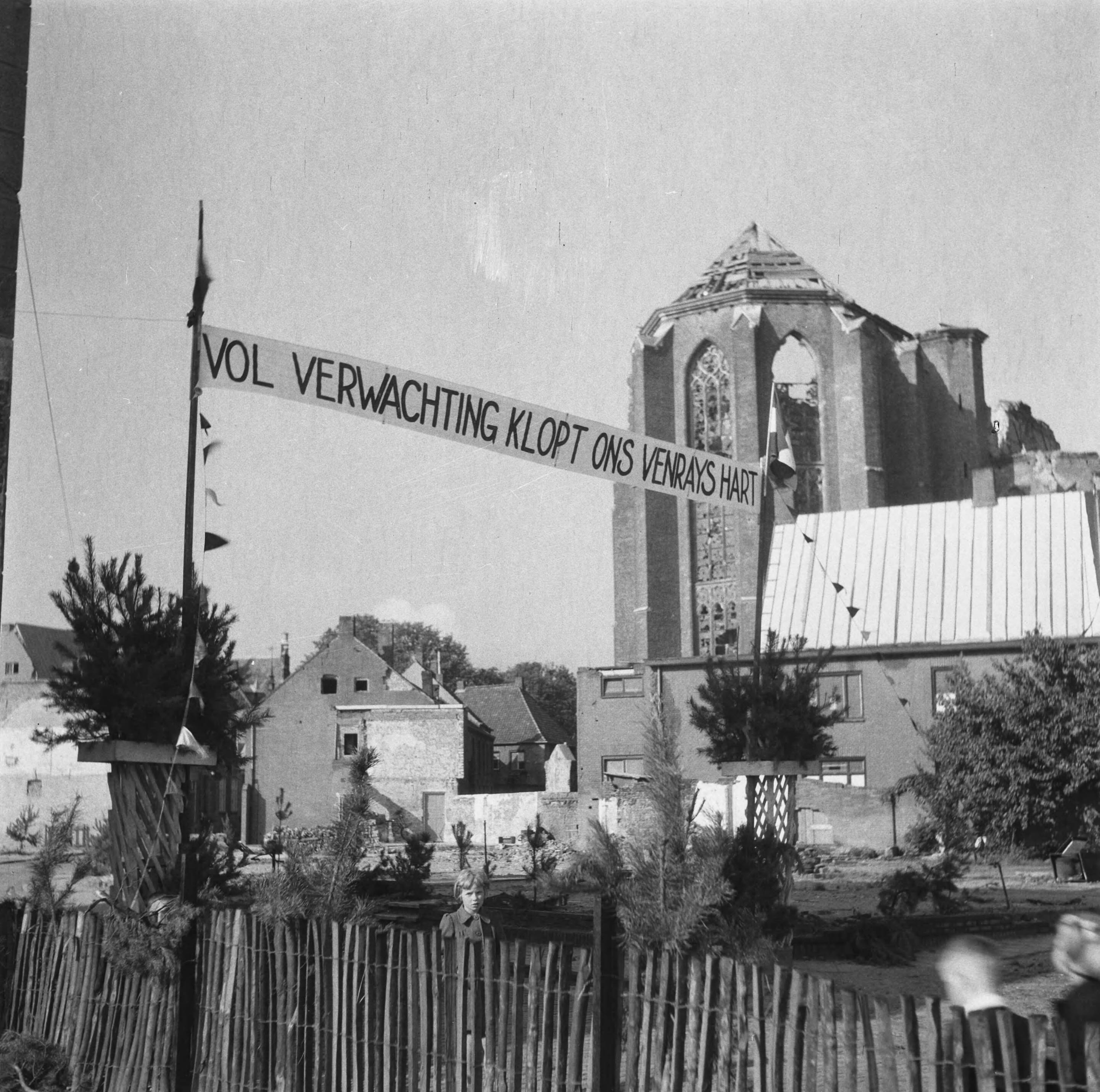 Hulpactie voor Venray. Spandoek ´Vol verwachting klopt ons Venrays hart´
