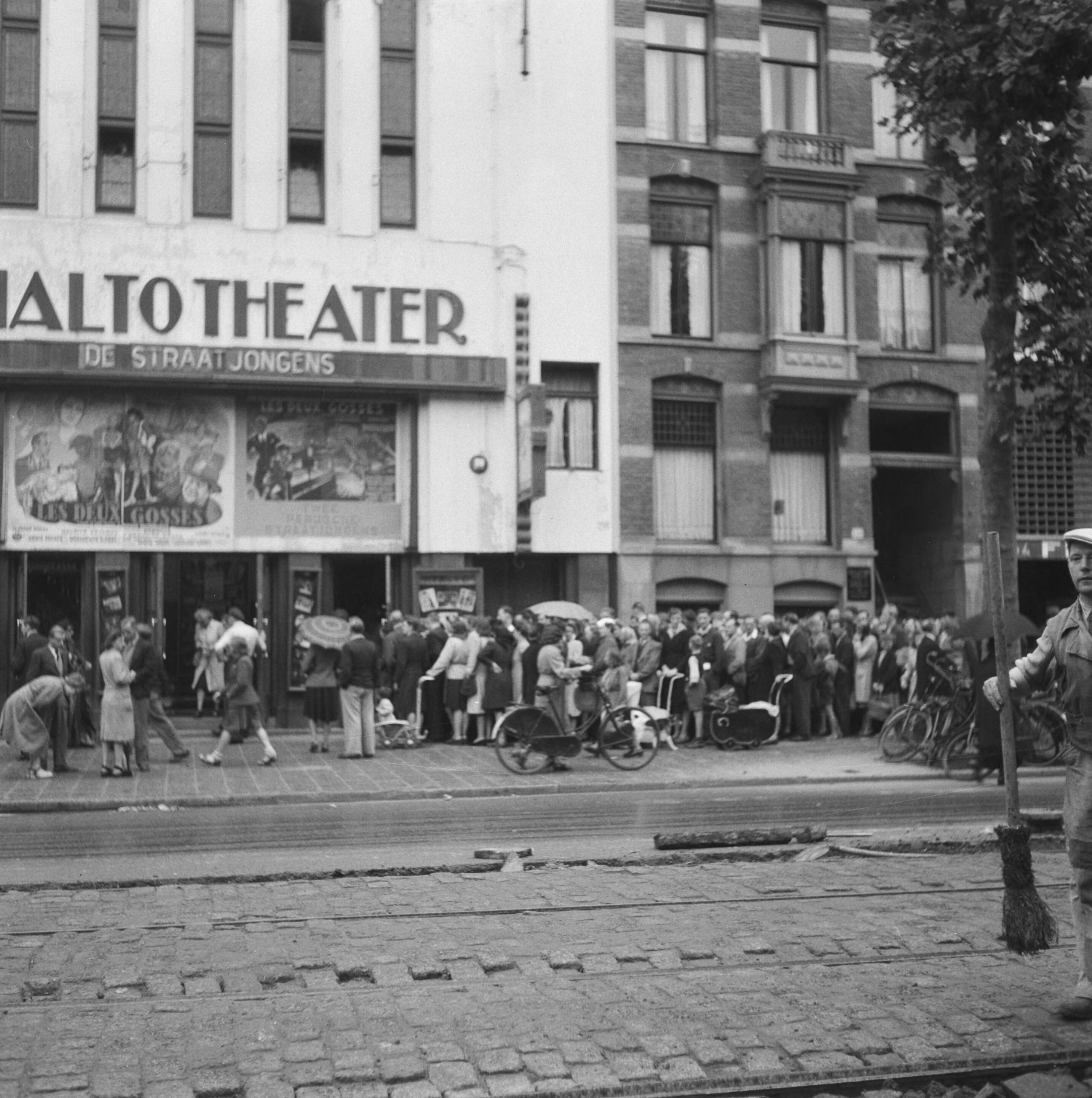 Kaartverkoop en rij wachtend publiek voor het Rialto-theater te Amsterdam