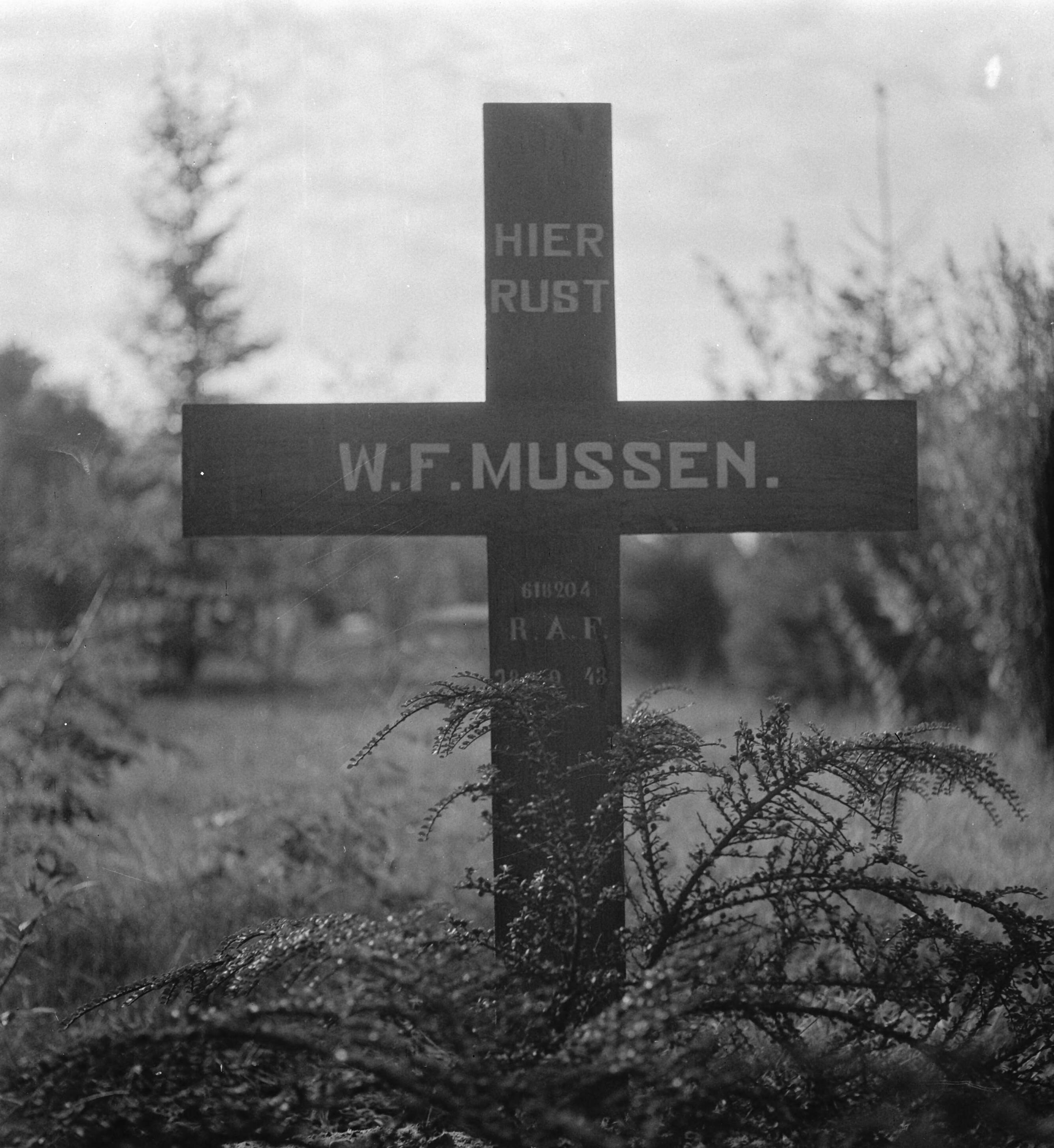 Graven van Britse oorlogsvliegers bij Vaassen. W.F. Mussen bemanningsleden Halifax