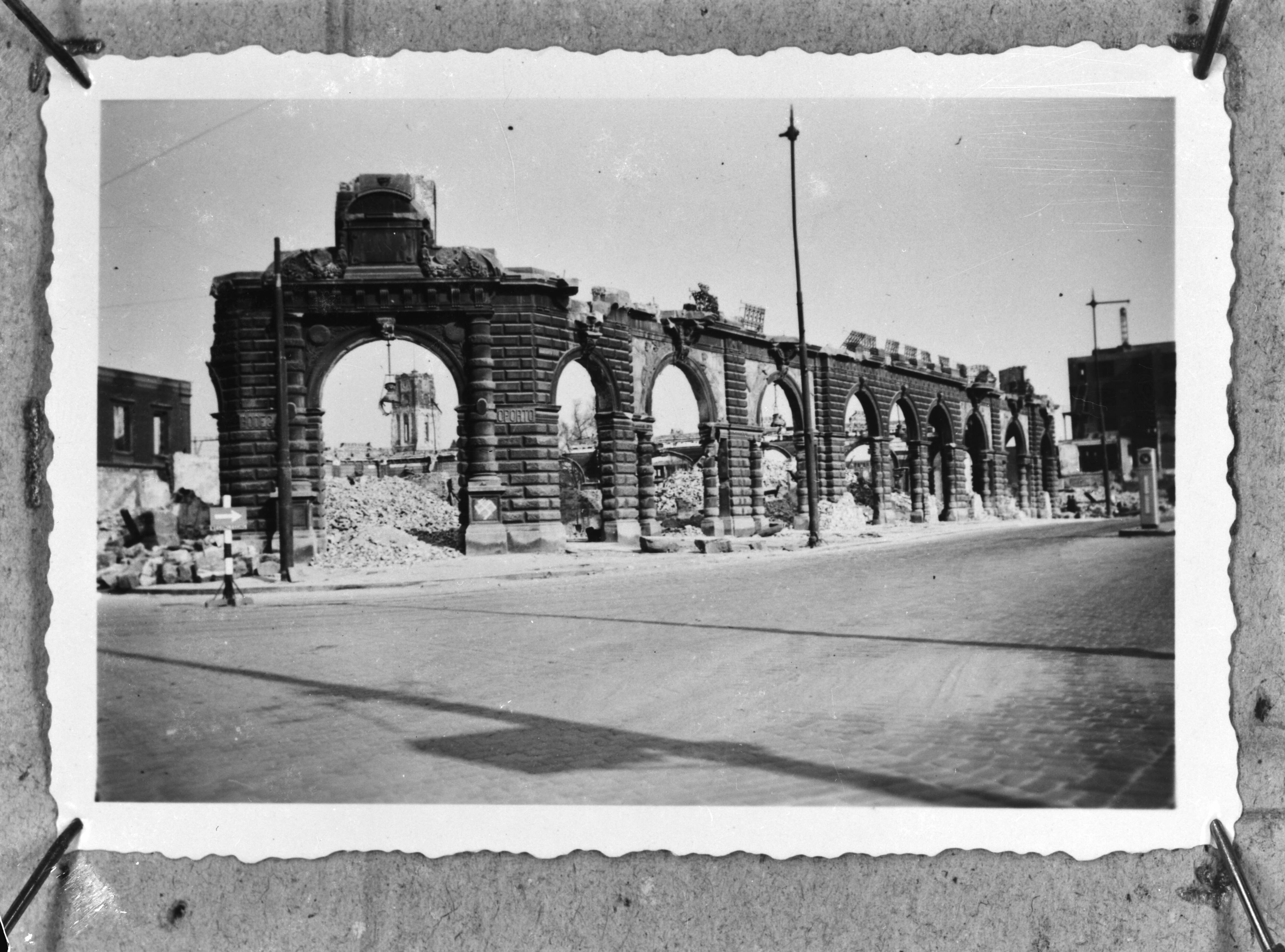 Repro Rotterdam na bombardement mei 1940. Station Delftsche Poort