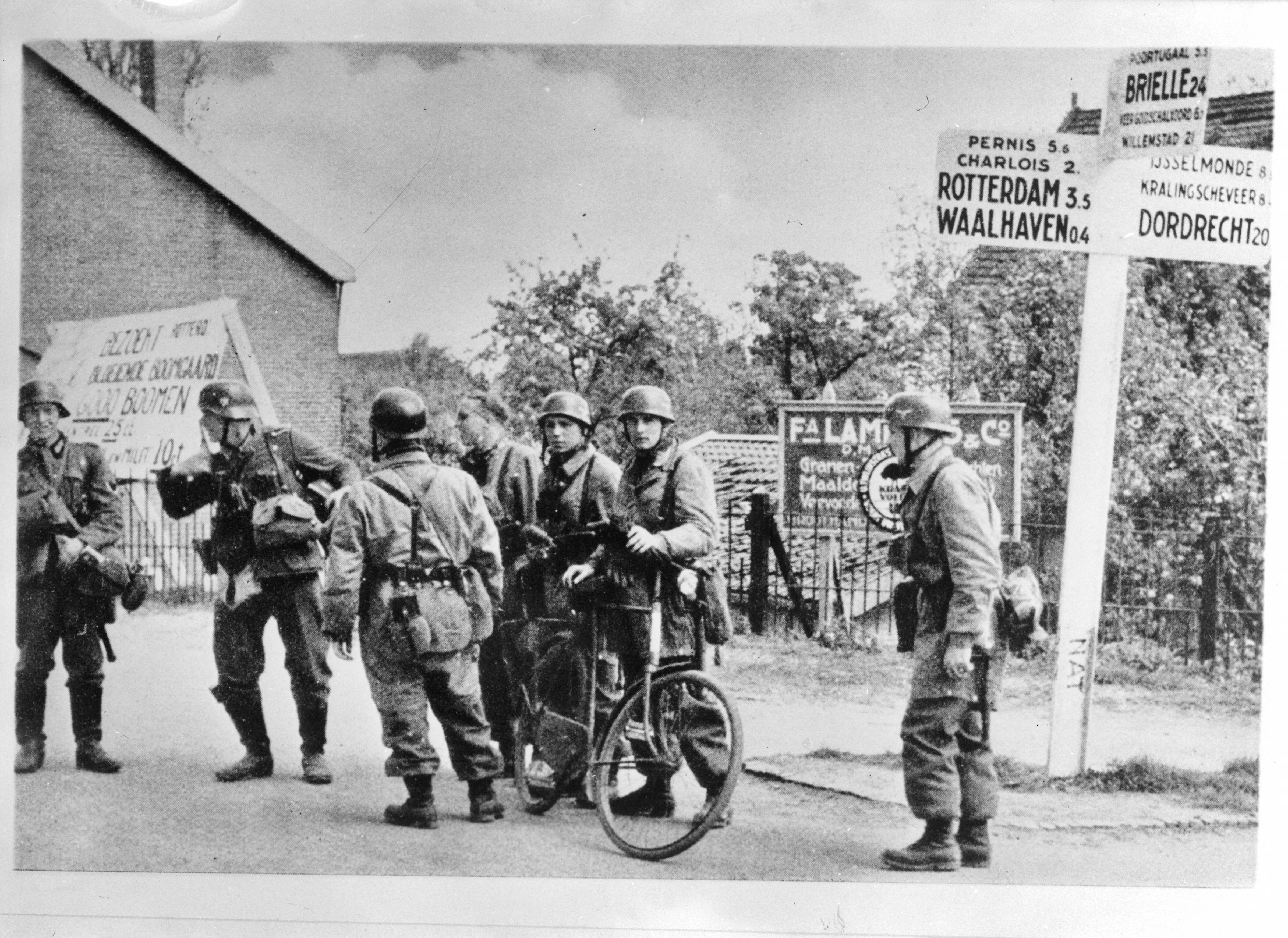 Duitse parachutisten en Wehrmacht soldaten bij vliegveld Rotterdam Waalhaven