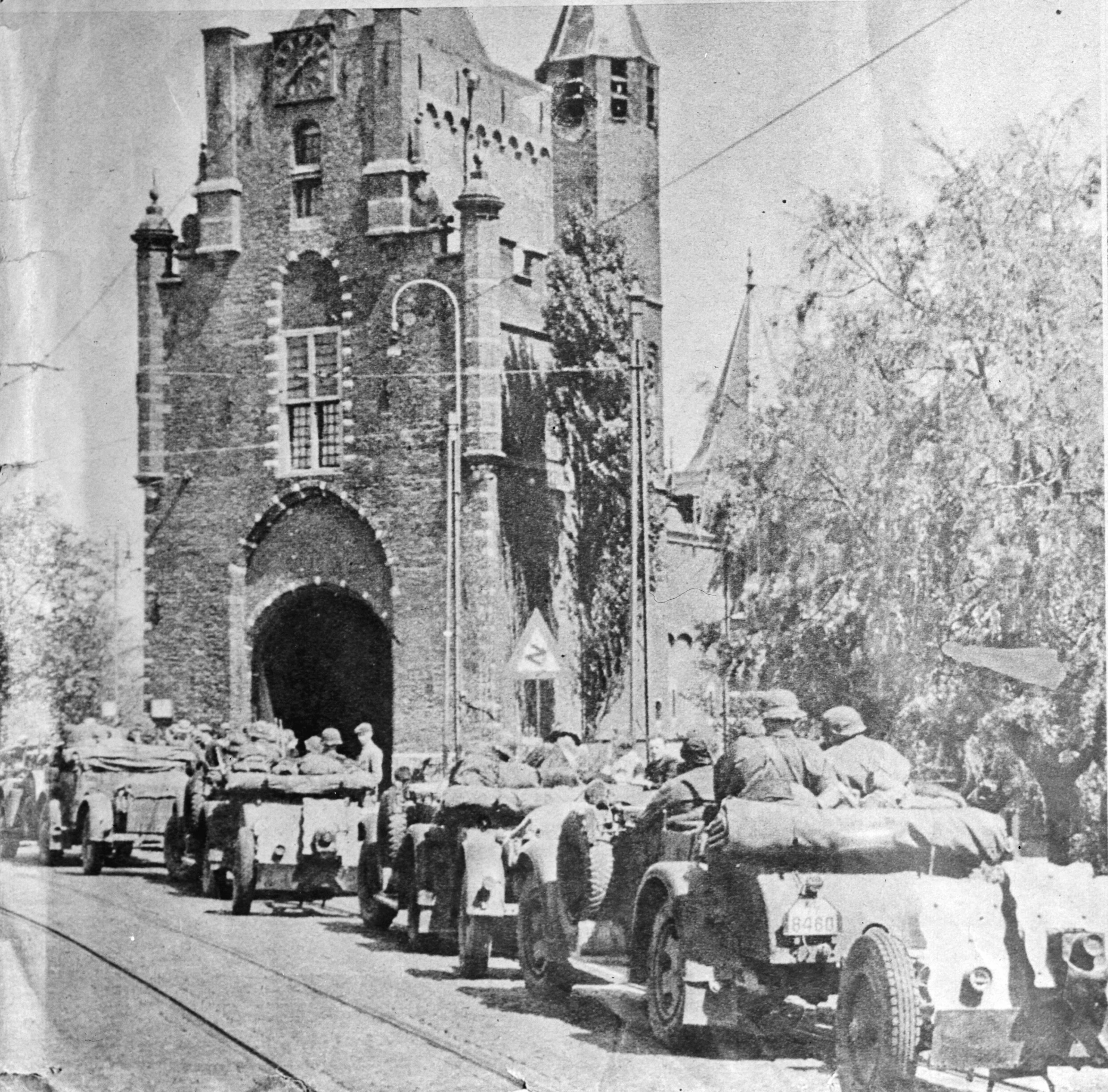 Duitse troepen trekken Haarlem binnen (bij de Amsterdamse Poort)