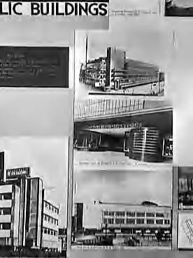 Panelen van de tenstoonstelling "Modern Dutch Architecture", 2e editie, opgezet door het Netherlands Information Bureau te New York. Ontwerp en teksten door P. Bromberg. Vergrotingen gemaakt door Superior Studios. Constructie van panelen etc, door Diorama Company