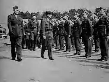 Korps Mariniers in Camp Lejeune (North Carolina). Brigade-generaal Alfred H. Noble (links), commandant van het Marine Trainings Commando te Camp Lejeune inspecteert een gedeelte van het detachement Verenigde Staten van het Korps Mariniers, begeleid door luitenant-kolonel L. Langeveld, commandant van het detachement Korps Mariniers en de nieuwe benoemde officieren Evert Weiland en Petrus Th. van Hees