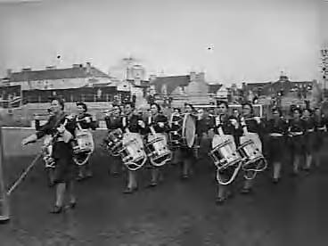 Voetbalwedstrijd tussen België en Nederland op Griffin Park te Brentford. A.T.S. muziekkorps