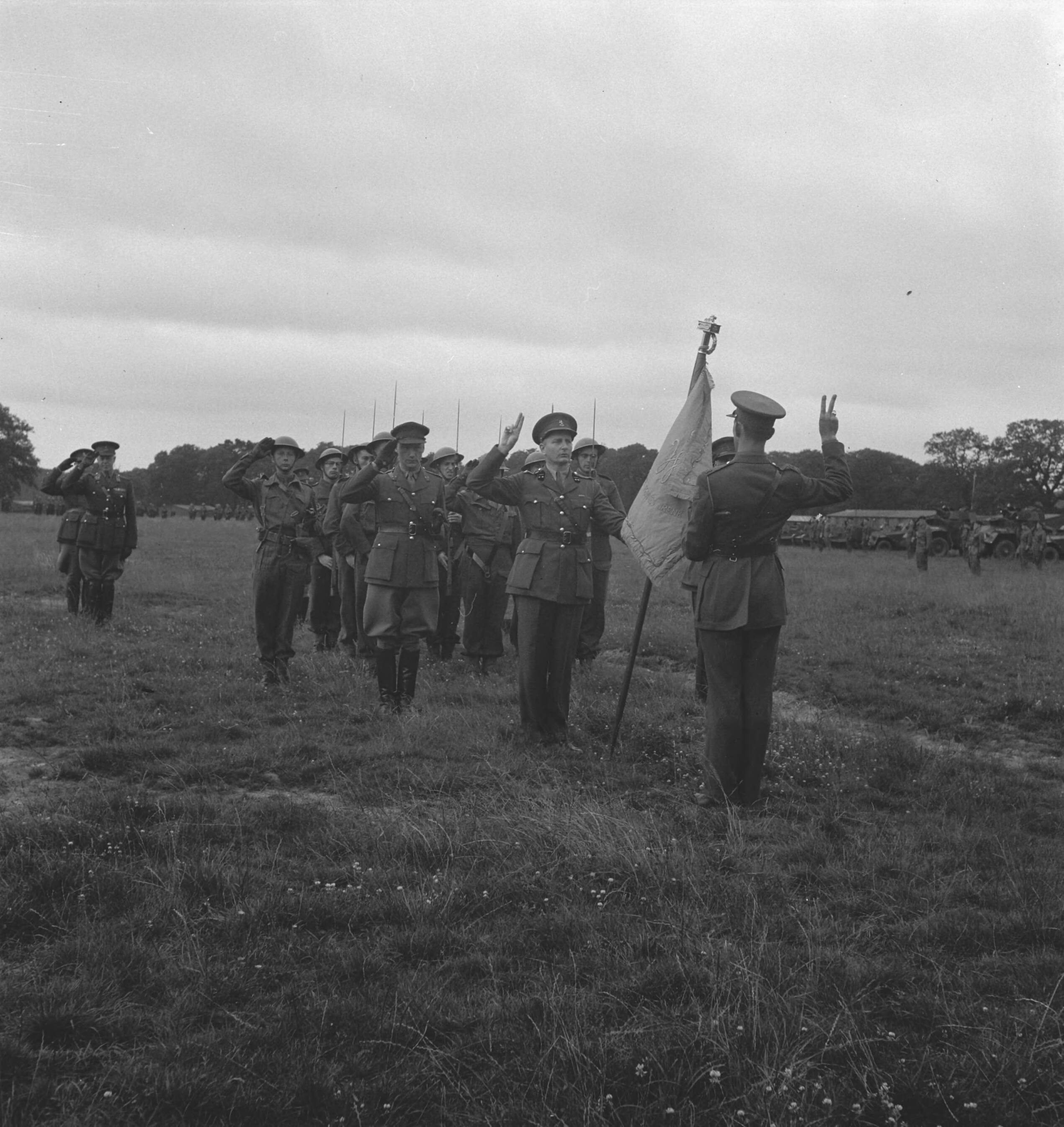 Prinses Irene Brigade. "58. A newly appointed officer being sworn in". Een nieuw benoemde officier legt de eed af