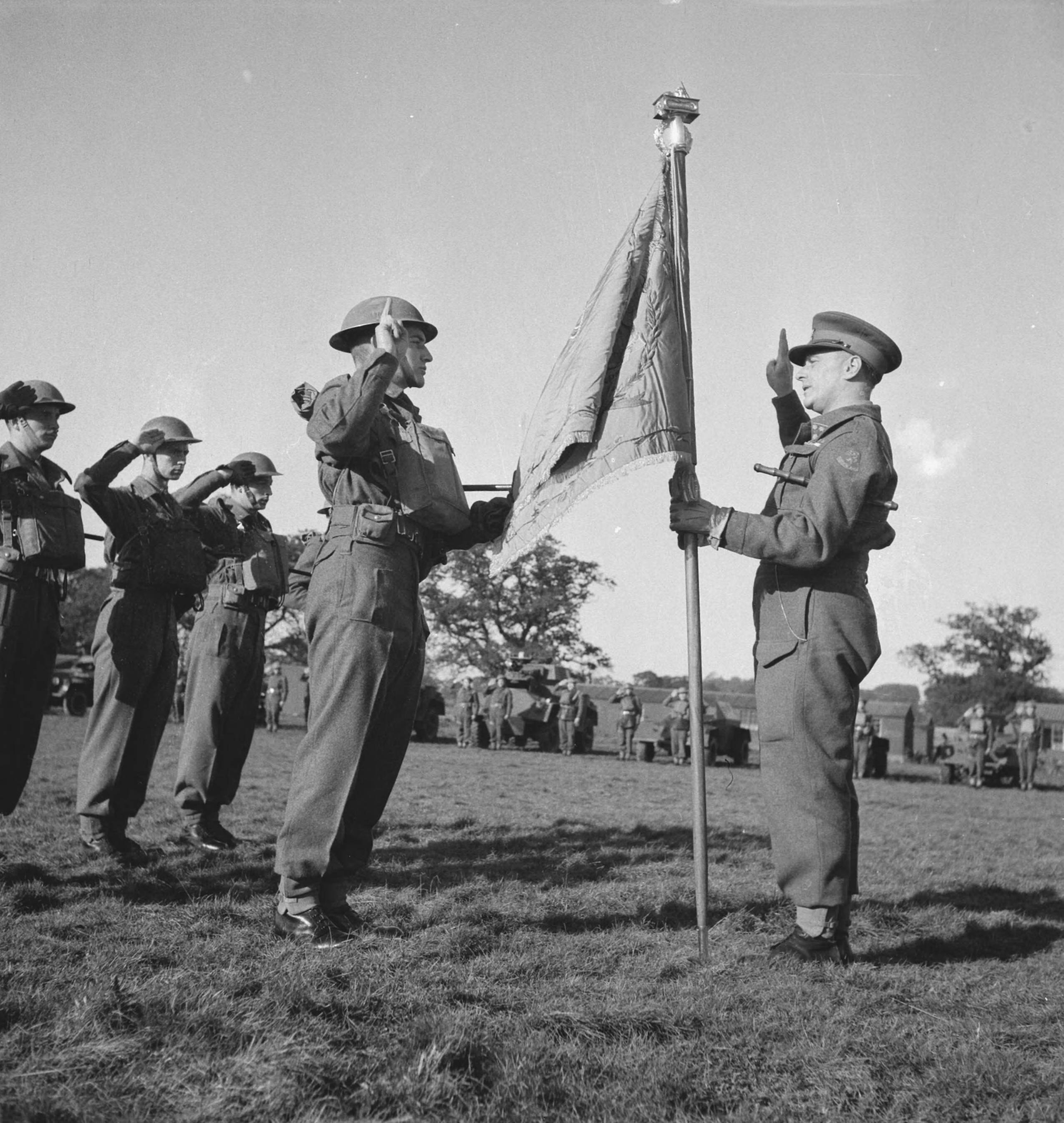 Prinses Irene Brigade."An officer being sworn in". Een officier legt de eed af