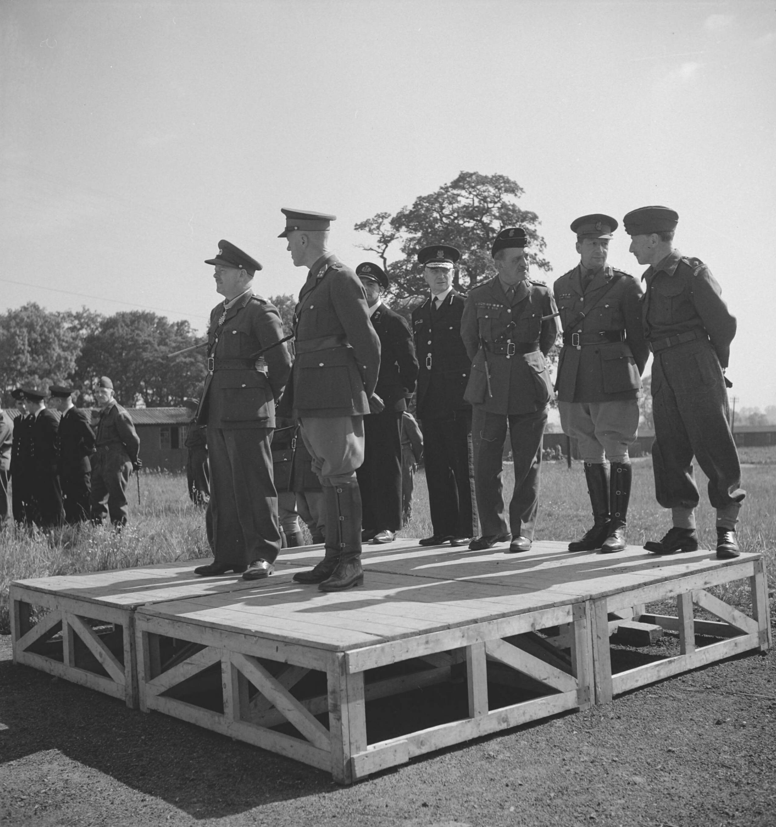 Prinses Irene Brigade. Generaal-majoor Phaff en kolonel James tijdens een parade