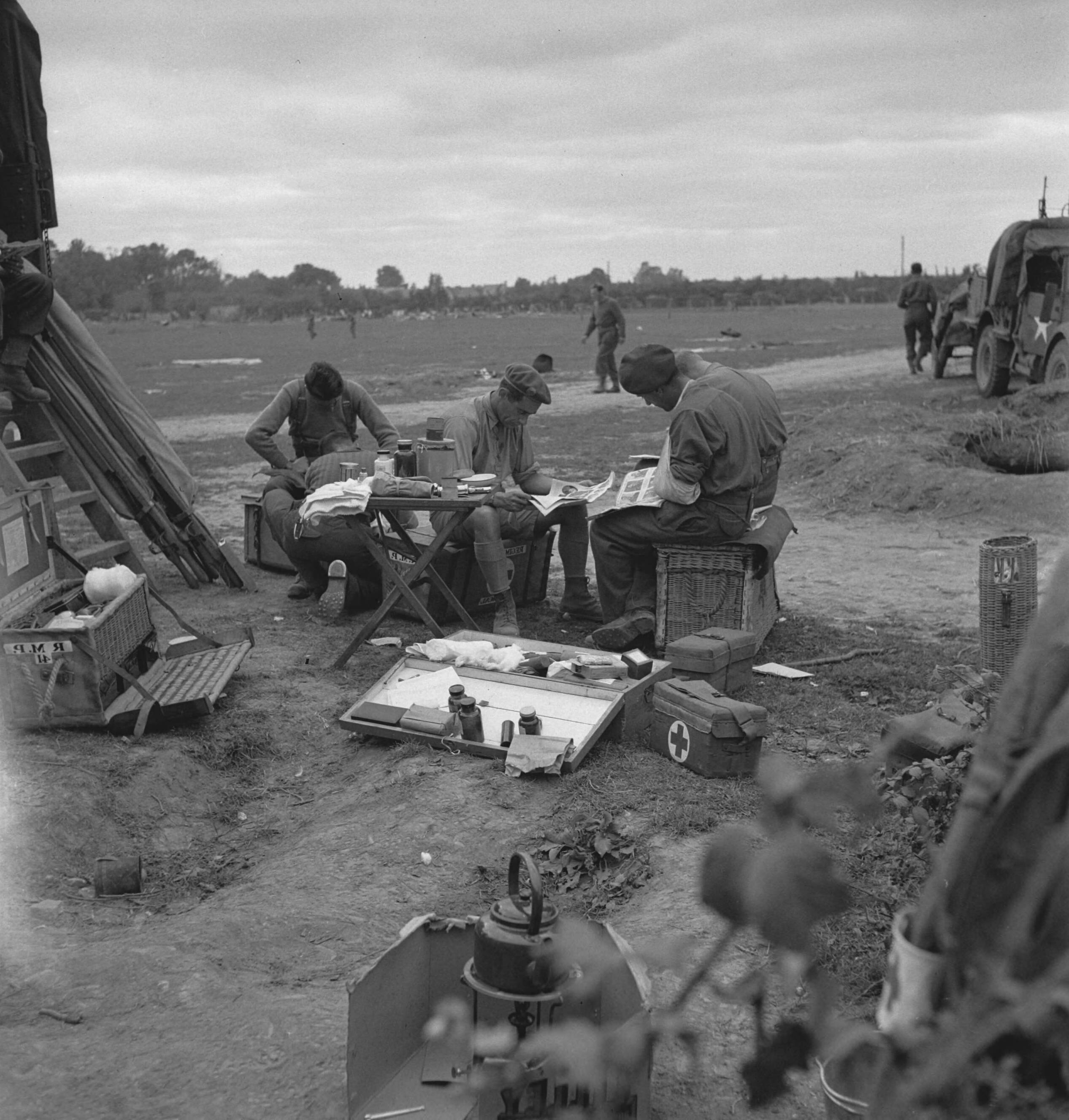 Koninklijke Nederlandse Brigade Prinses Irene. Landing in Normandië. Tijdelijk veldhospitaal