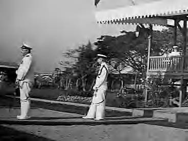 Commandant der Marine (CMR) te Soerabaja kapitein ter zee P. Koenraad spreekt de nieuw benoemde officieren toe