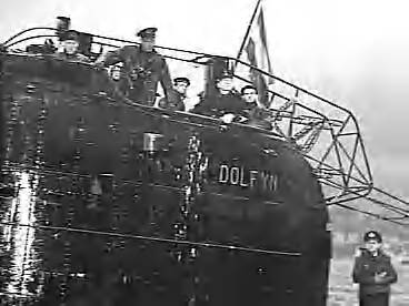 Onderzeeboot Hr. Ms. "Dolfijn" arriveert in een Britse haven na 17 maanden aanwezigheid in de Middelandse Zee waarbij 37.000 zeemijlen afgelegd werden