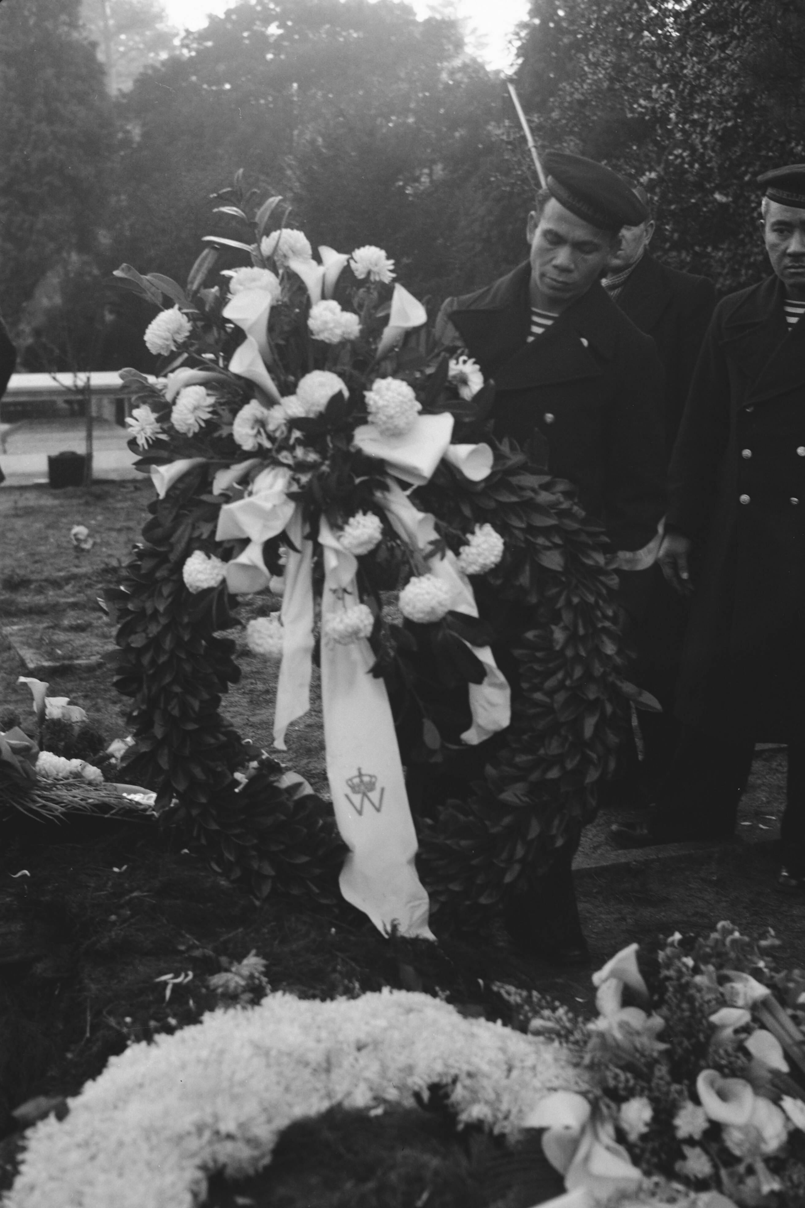 Begrafenis van minister Soejono in Woking (Surrey)-januari 1943. De krans gezonden door koningin Wilhelmina