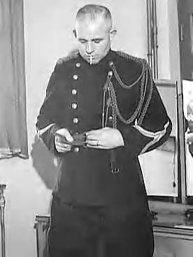 Serie Koninklijke Marechaussee in Engeland. Marechaussee Kitz, die verblijft in het Pastoria Hotel, St. Martin Street, Londen, kleedt zich aan