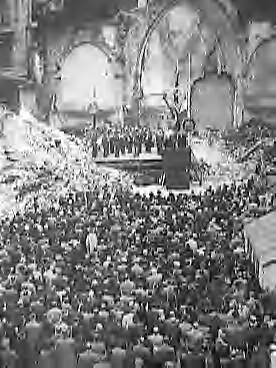Ceremonie bij de door Duitse bommen verwoeste Nederlandse Kerk in Austin Friars (Londen) ter herdenking aan de Duitse inval